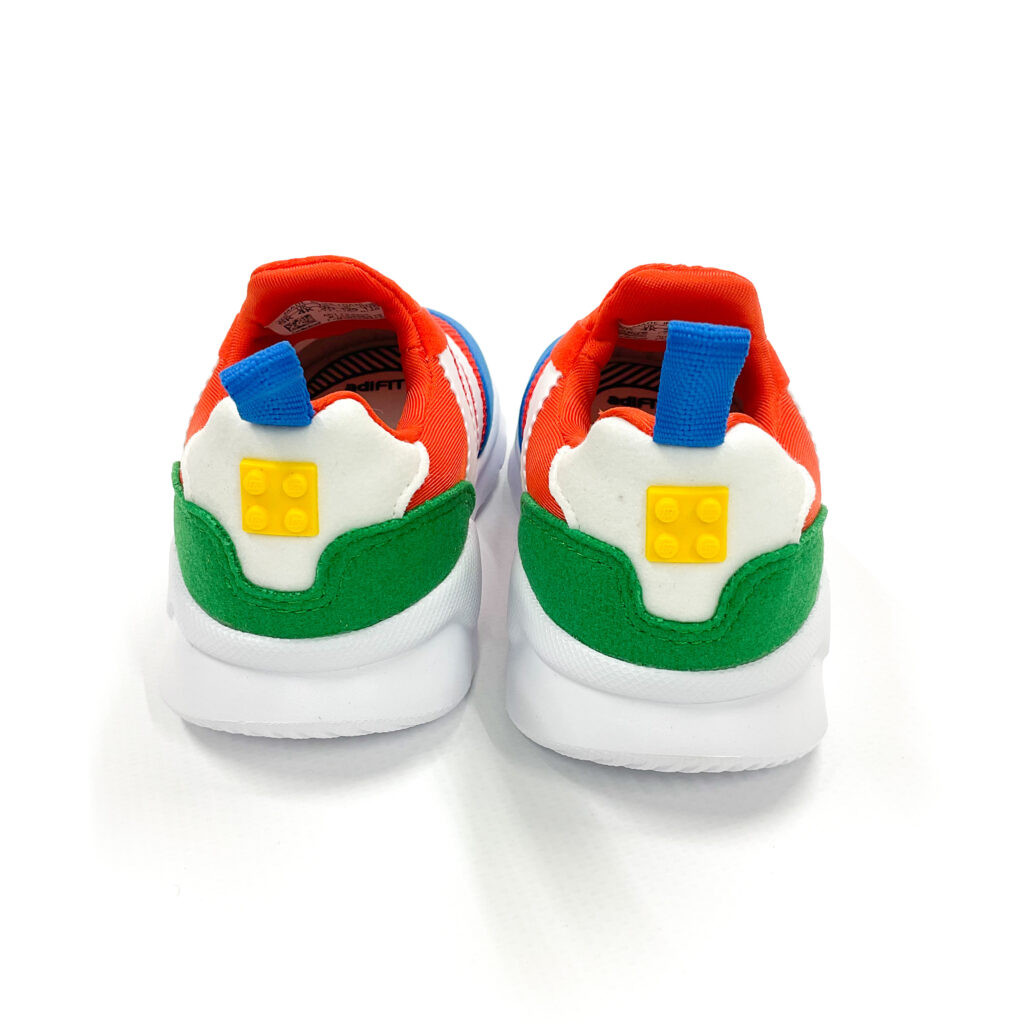 レゴとのコラボモデルで、かかとがレゴブロックのようになっています