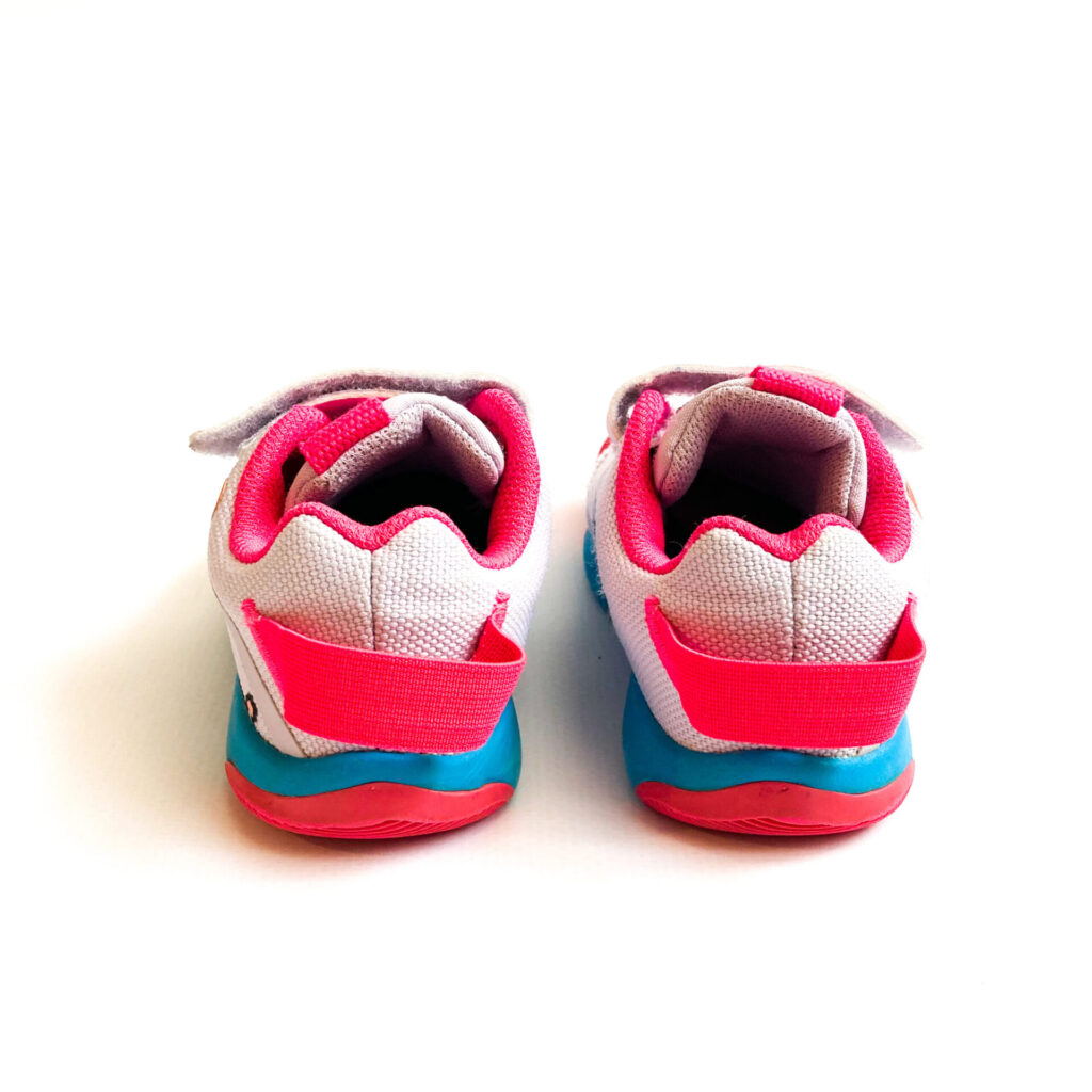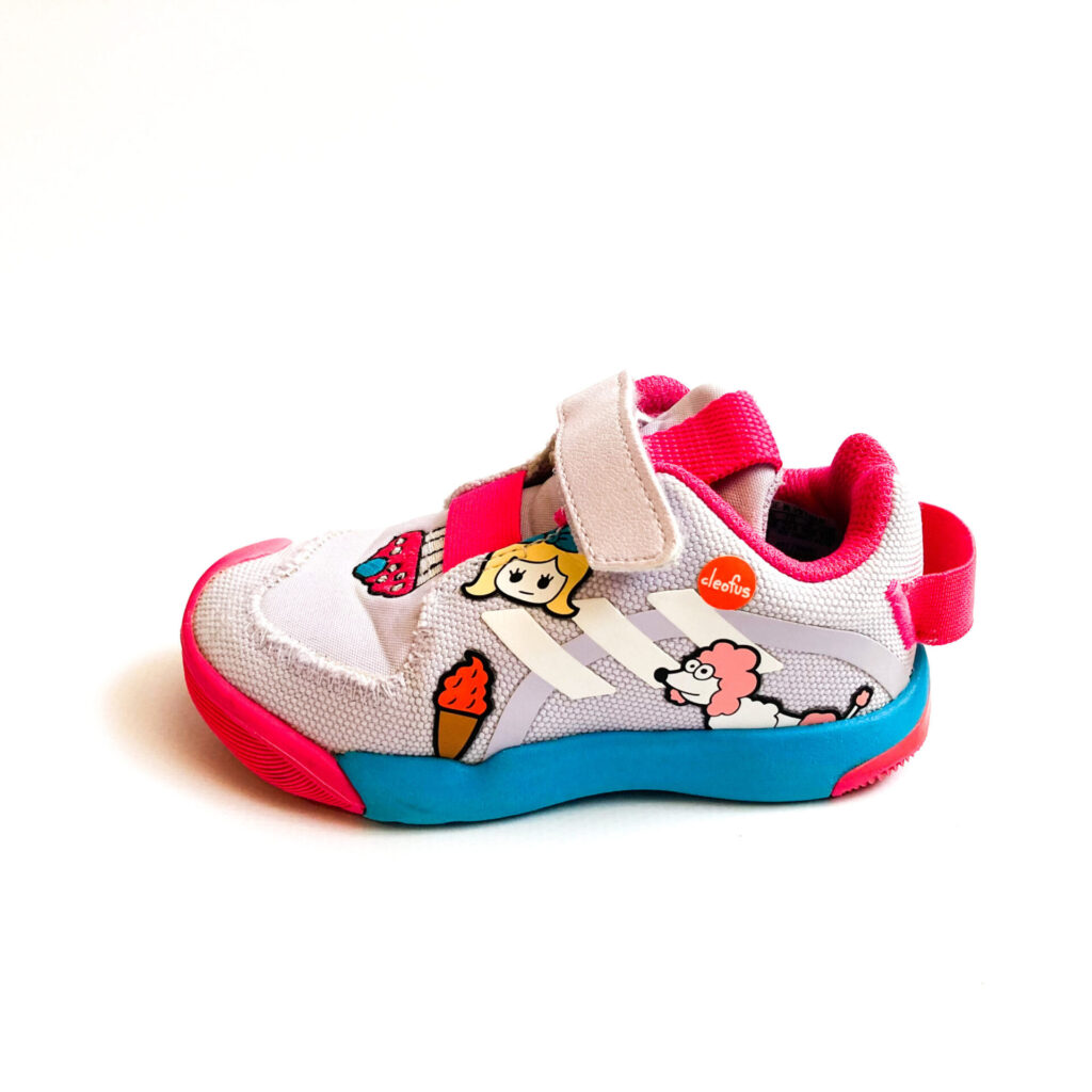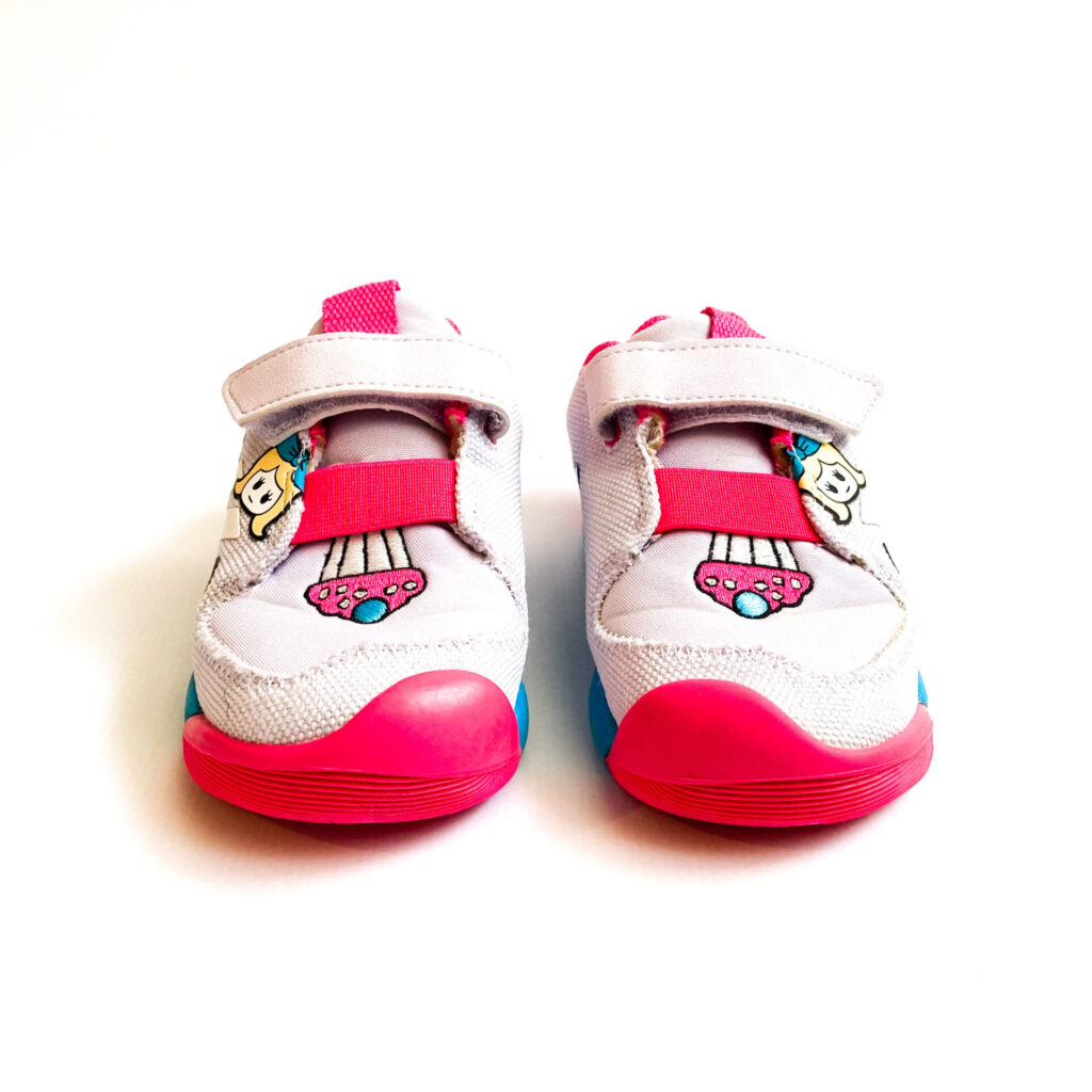 可愛らしいイラストがあしらわれた、クレオファスとのコラボモデル, 履きシワ部分に線が出ています