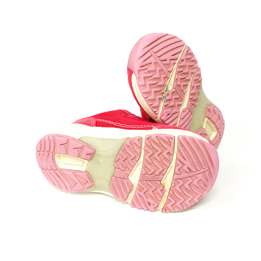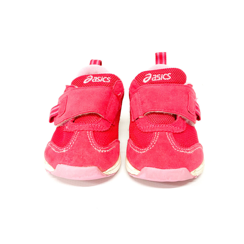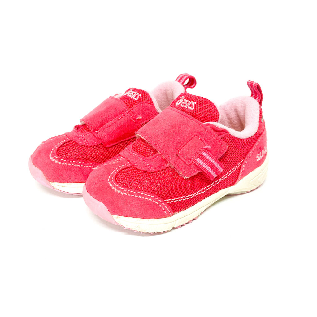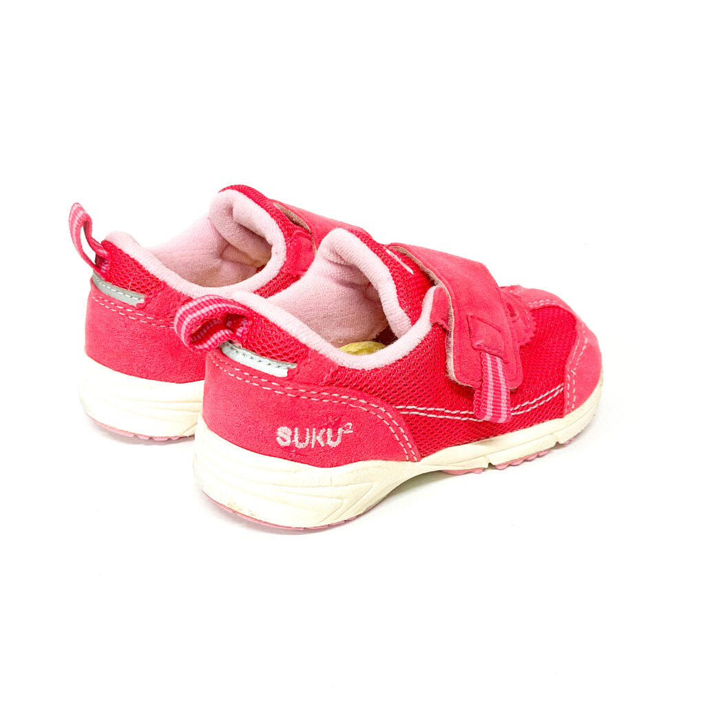 かかとの記名跡をシールで隠しています, ピンクがかわいいスクスクシリーズです
