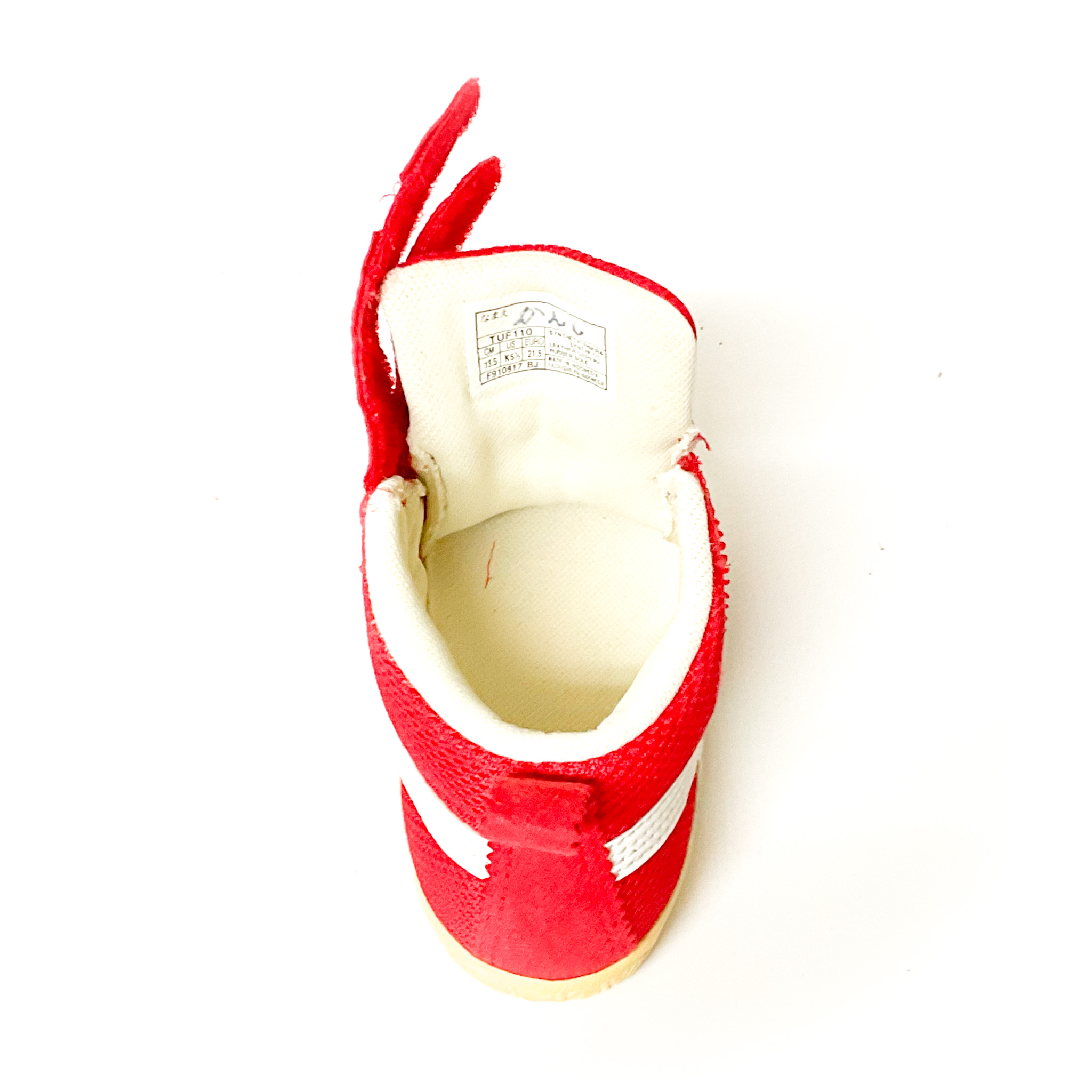 ベロ裏の記名跡をシールで隠しています, 履き口に破れがあります