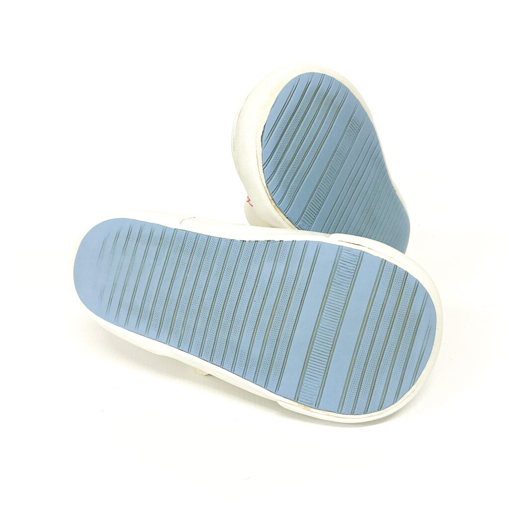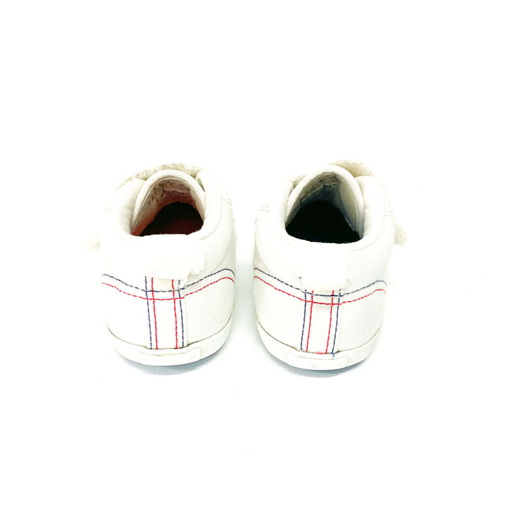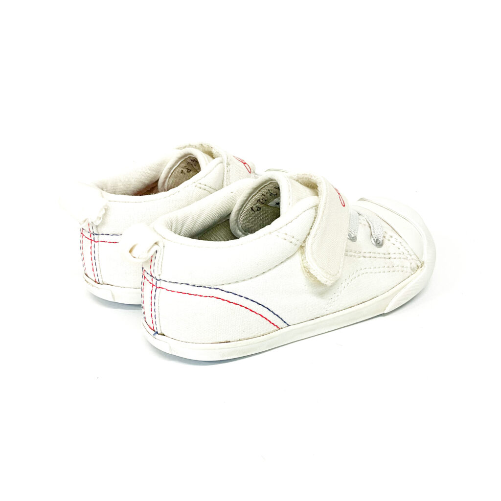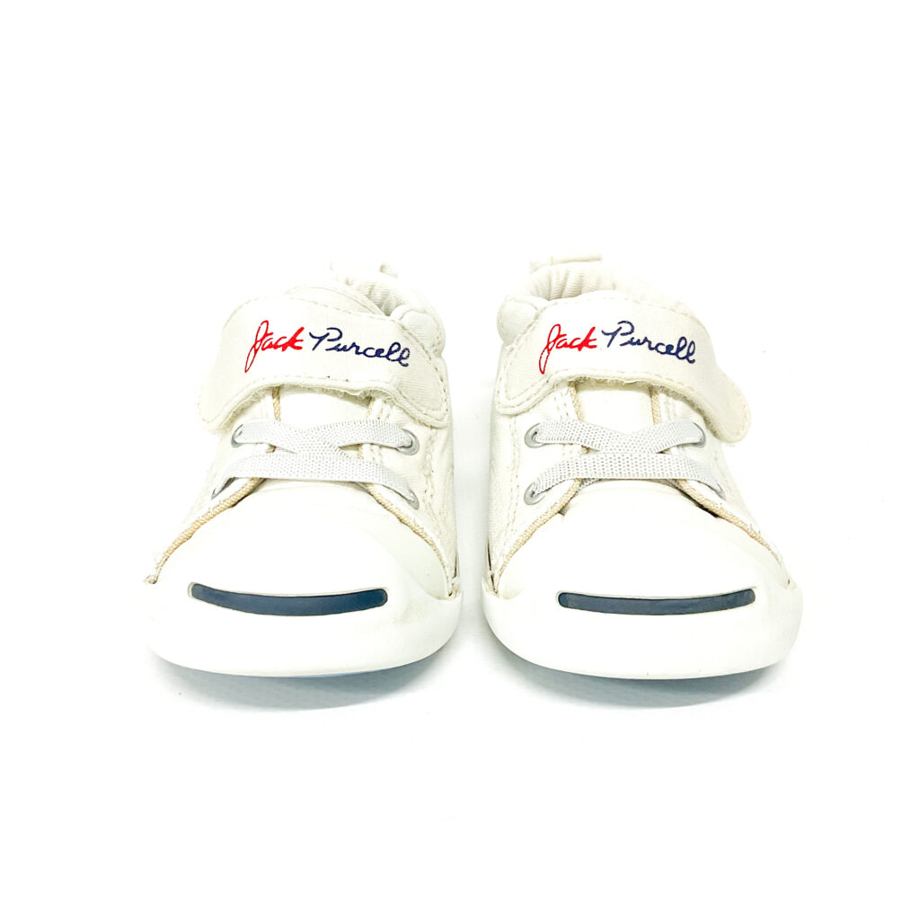 コンバースのジャックパーセル!青と赤のステッチがかわいい!, ベロの内側に記名シールを貼っています