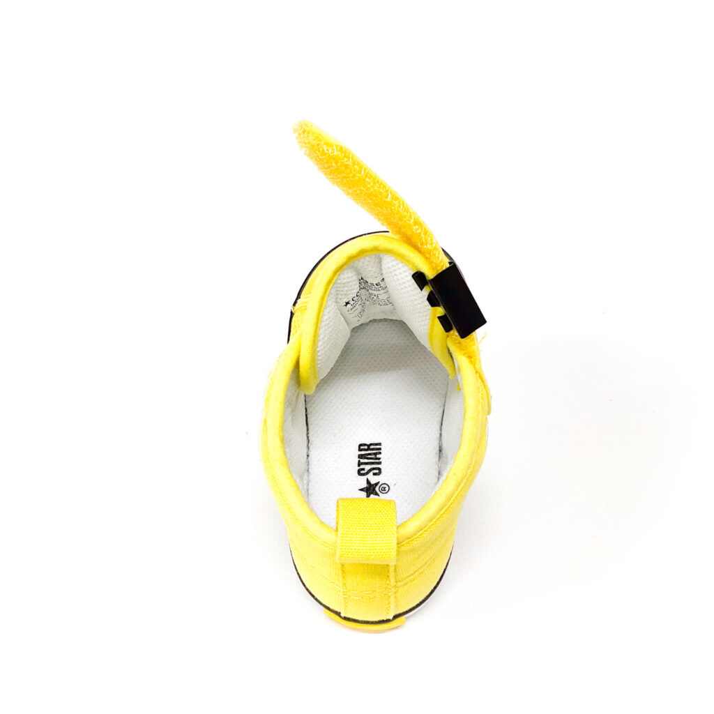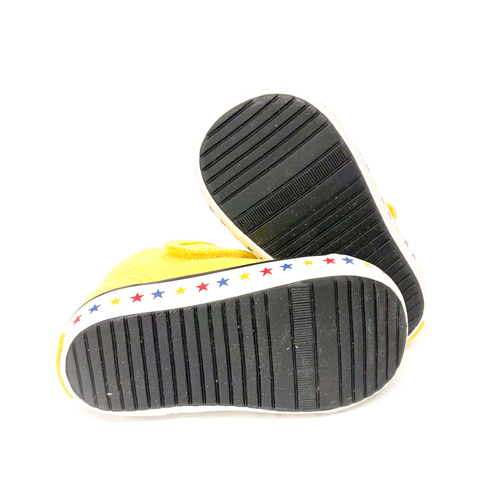 コーディネートのアクセントになる黄色です。, 左のつま先にシミがあります。