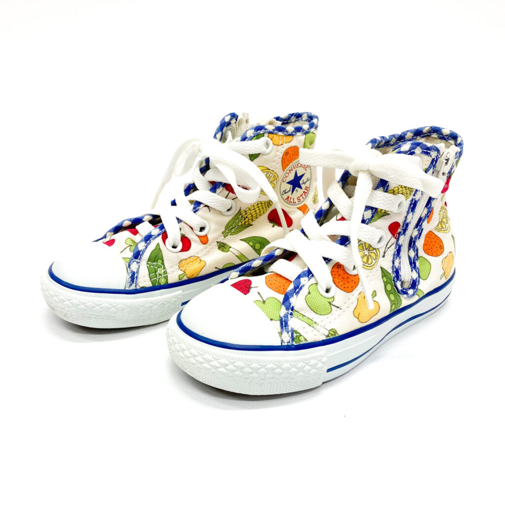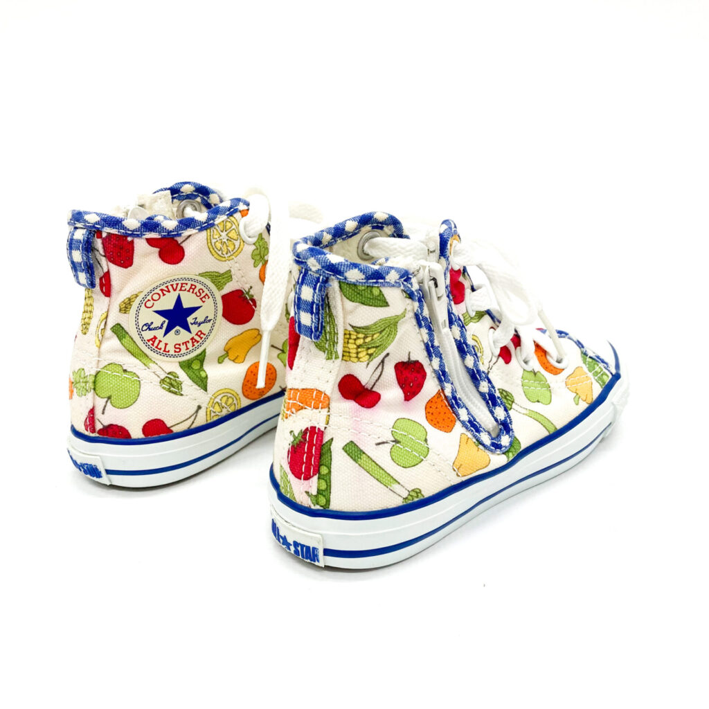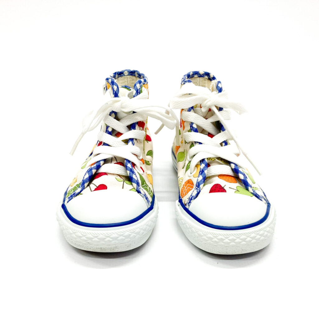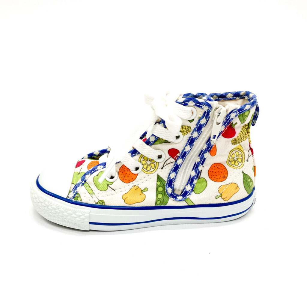 お野菜や果物がデザインされた可愛らしいスニーカーです