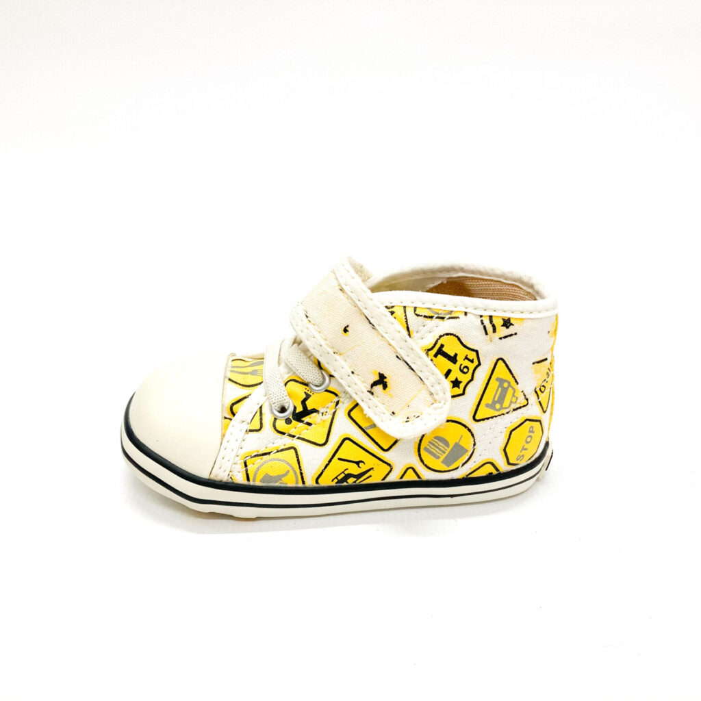ハイカットですが、オープンベロ構造でとっても履きやすいです, マジックテープ部分のデザインが消えています