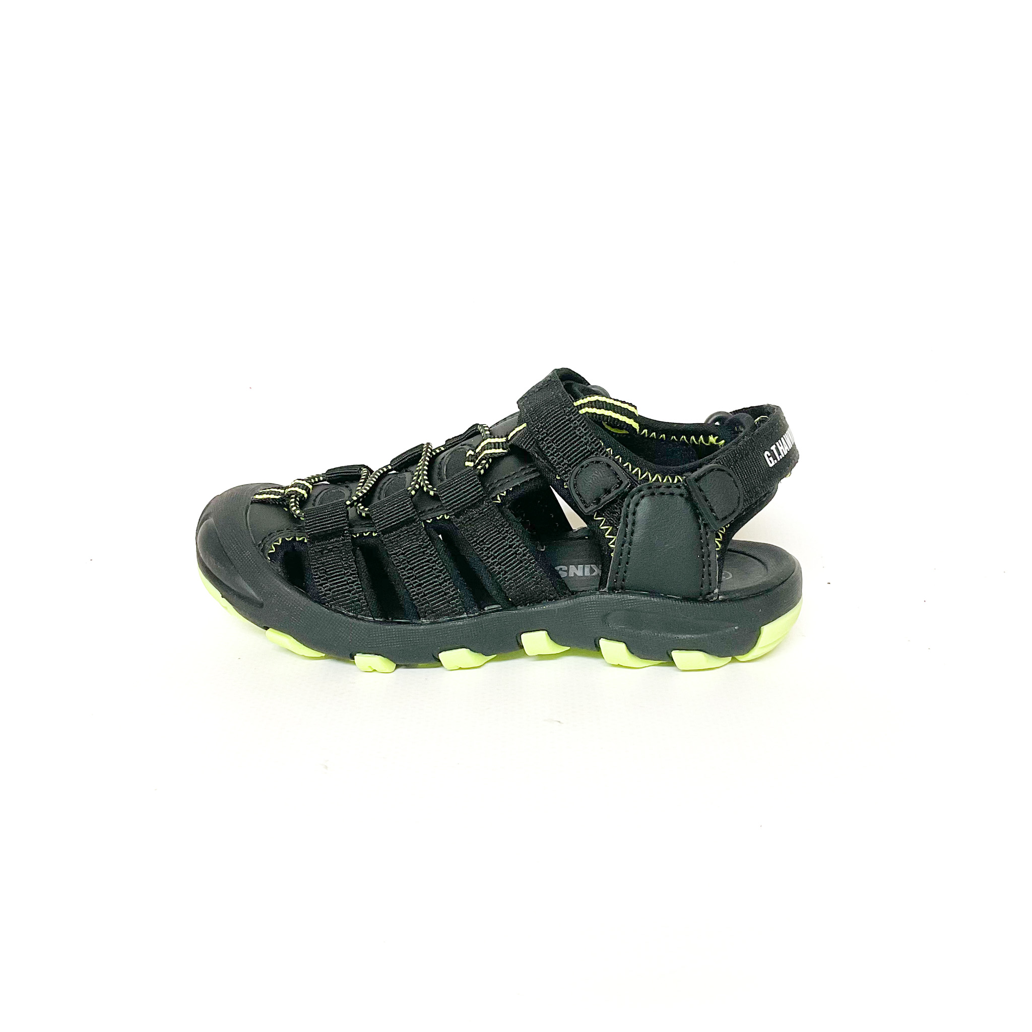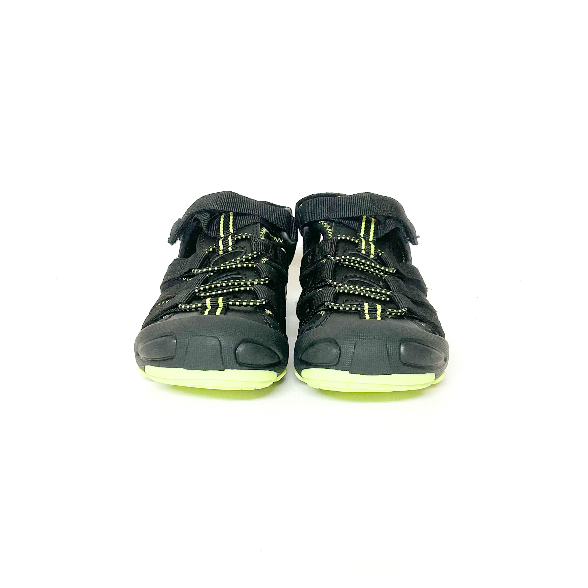 アクセントの蛍光色が可愛い1足です!, かかと部分でもマジックテープでサイズ調整ができる仕様です