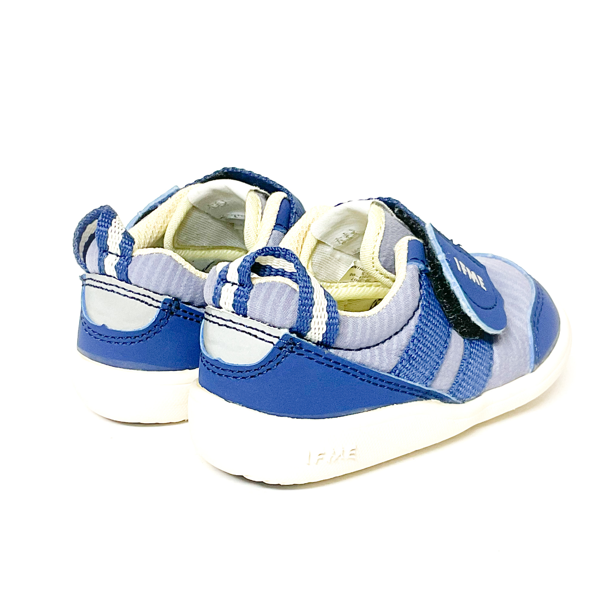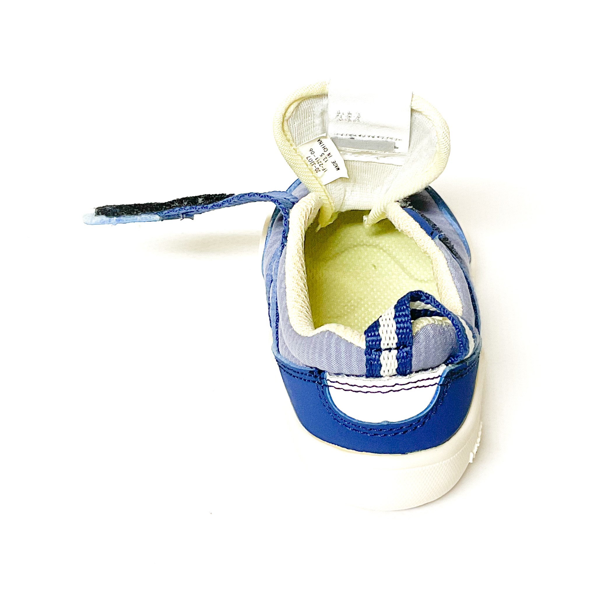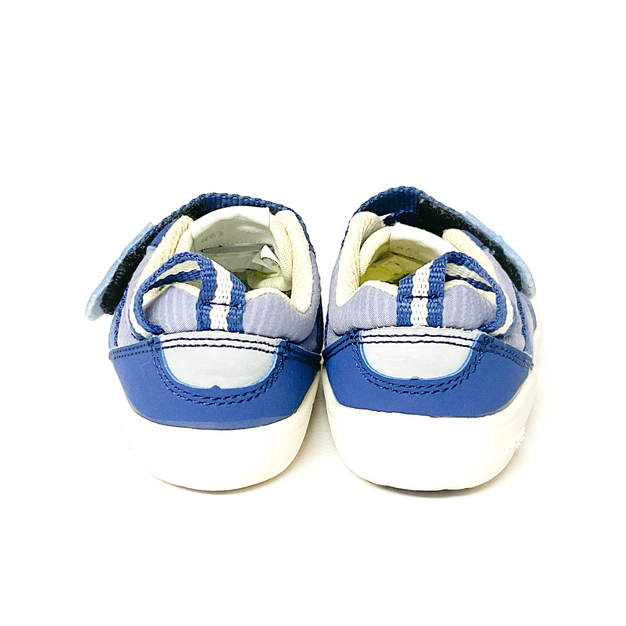 1本ベルトで脱ぎ履き簡単, ベロ裏の記名跡をシールで隠しています