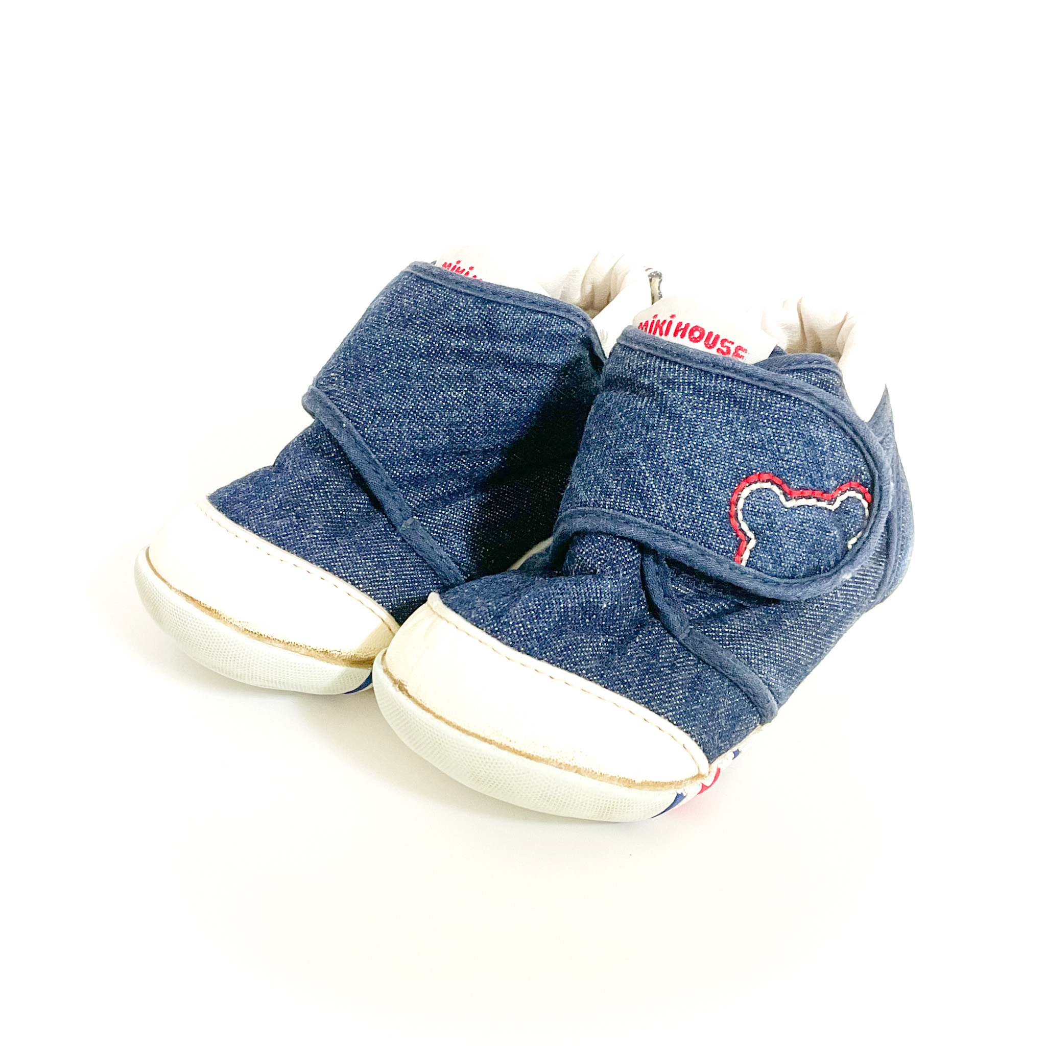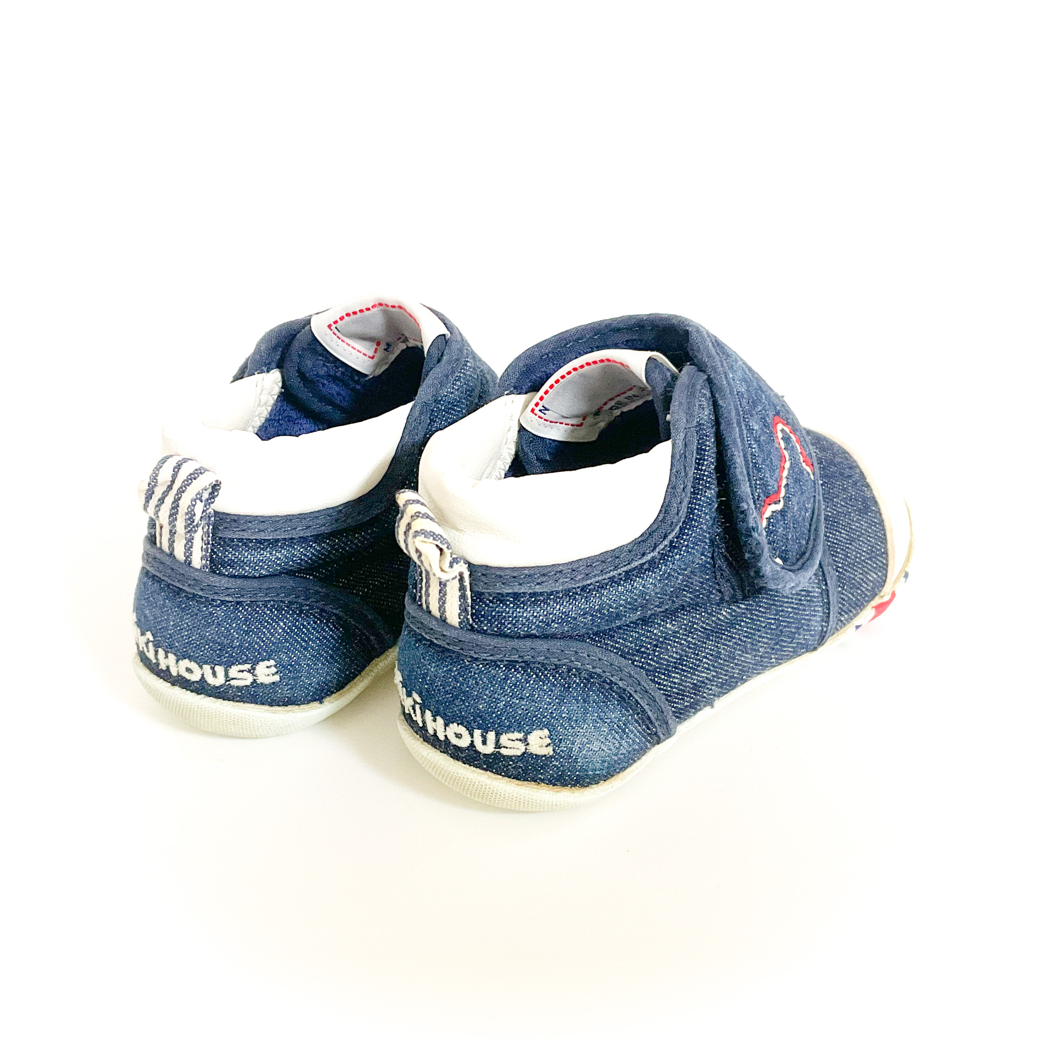 かかとに擦れがあり色が薄くなっています, デニム地が可愛らしいミキハウスの1足です!