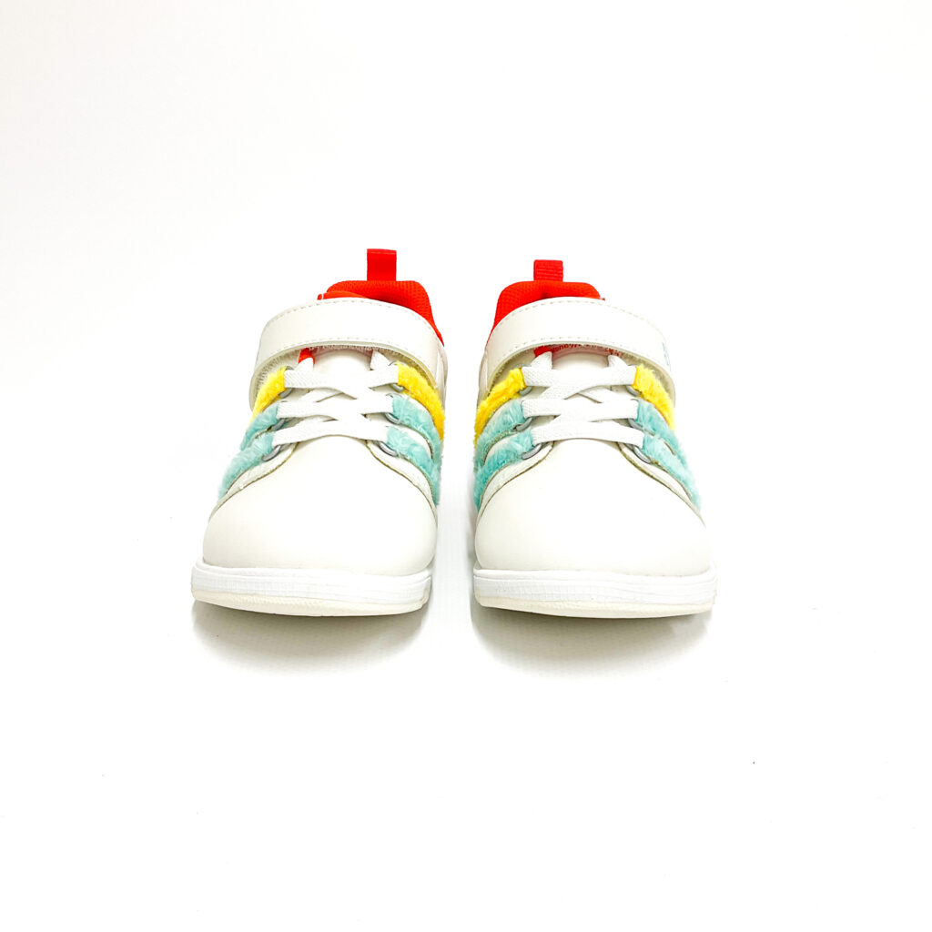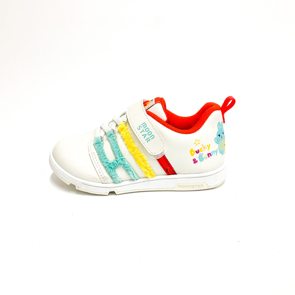 かかとに可愛いキャラクターがあしらわれています。, 薄汚れがあり、使用感があります
