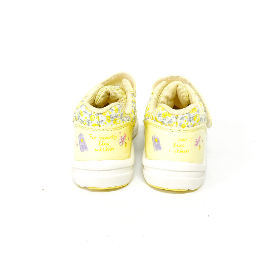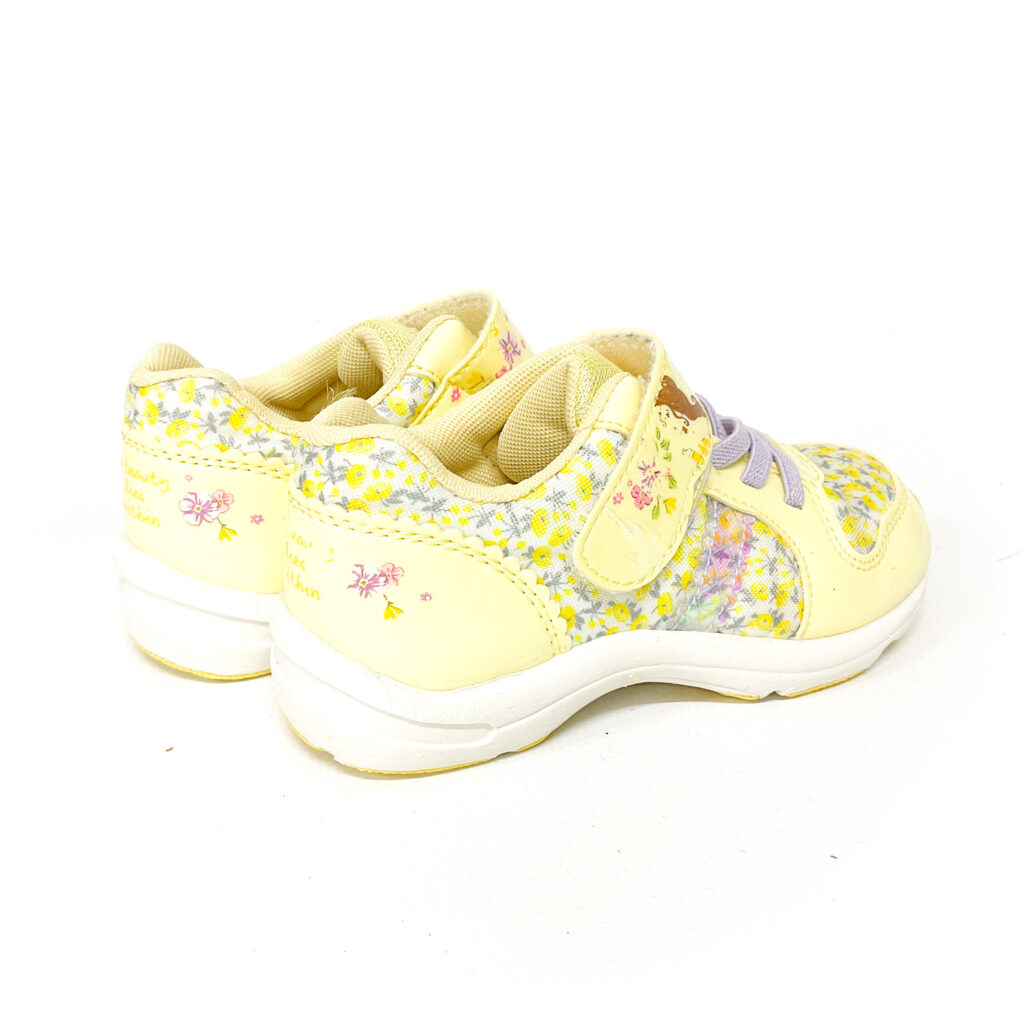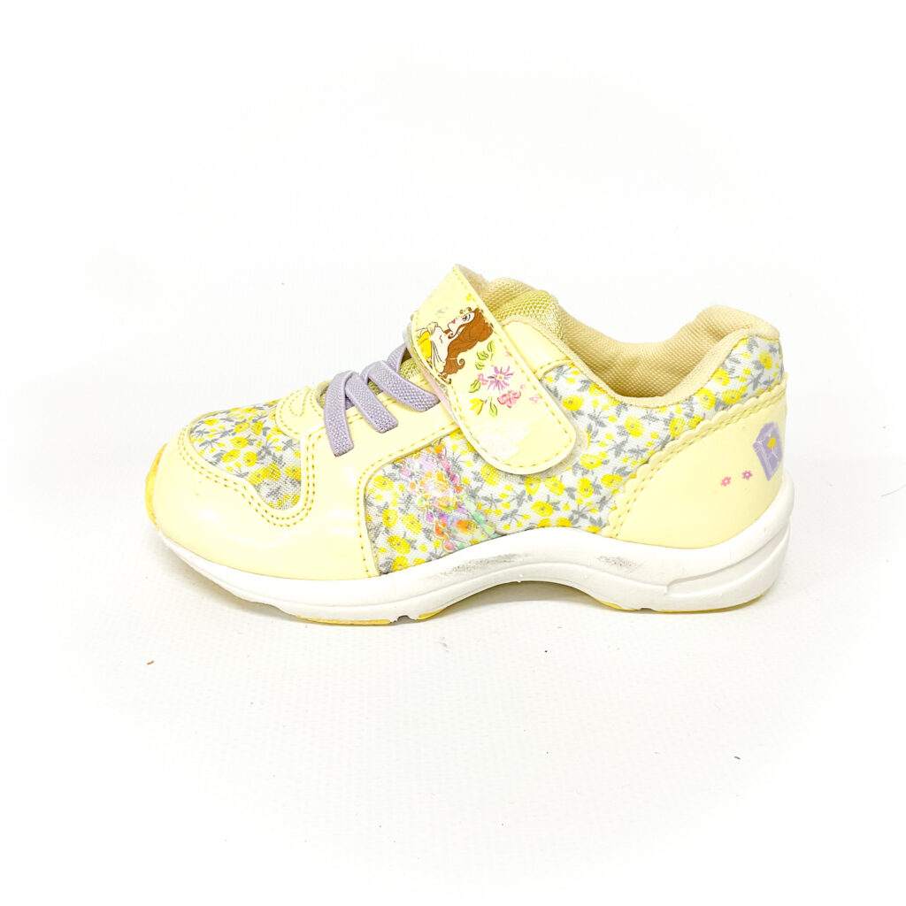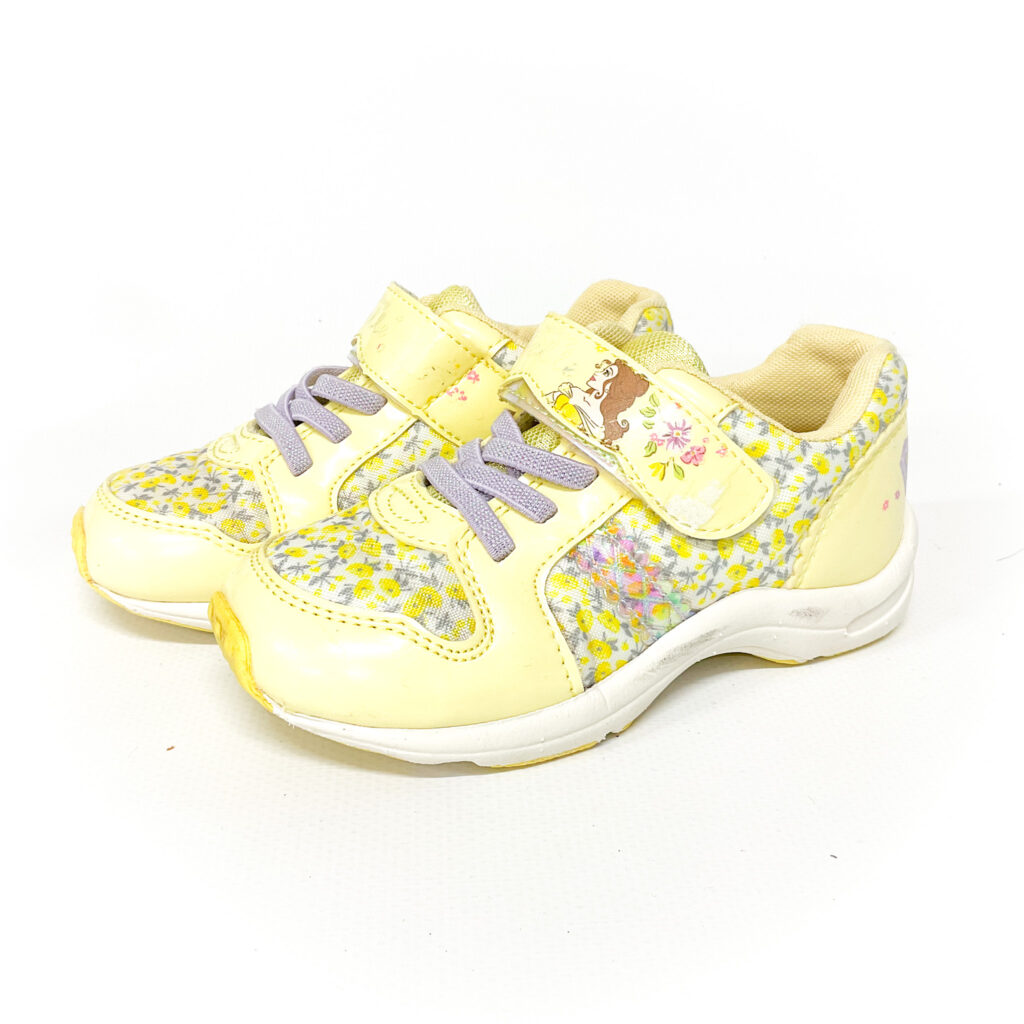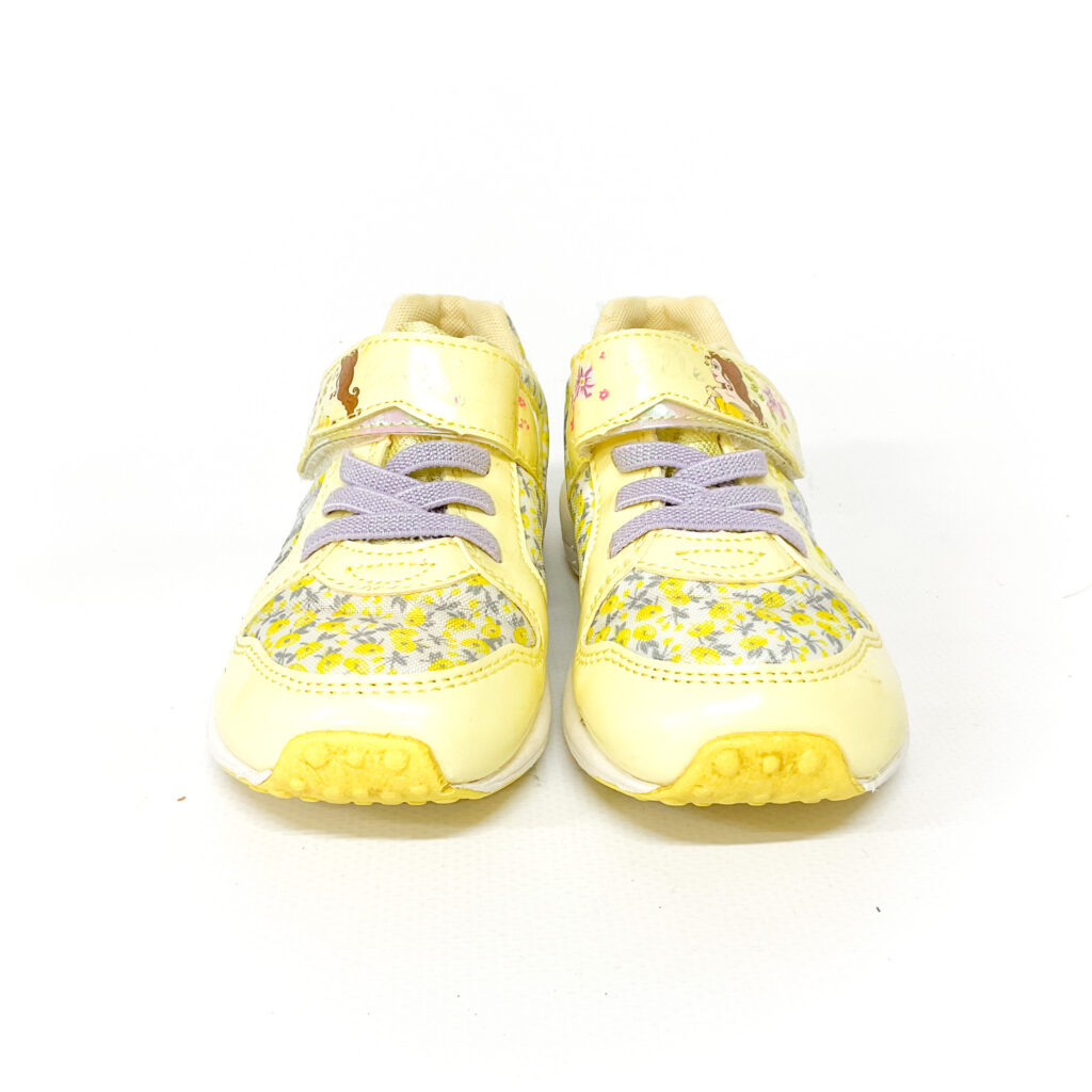 かかと・つま先がスレています。, マジックテープの部分マークが剥がれてます, 全体にお花がデザインされていて可愛らしいお靴です