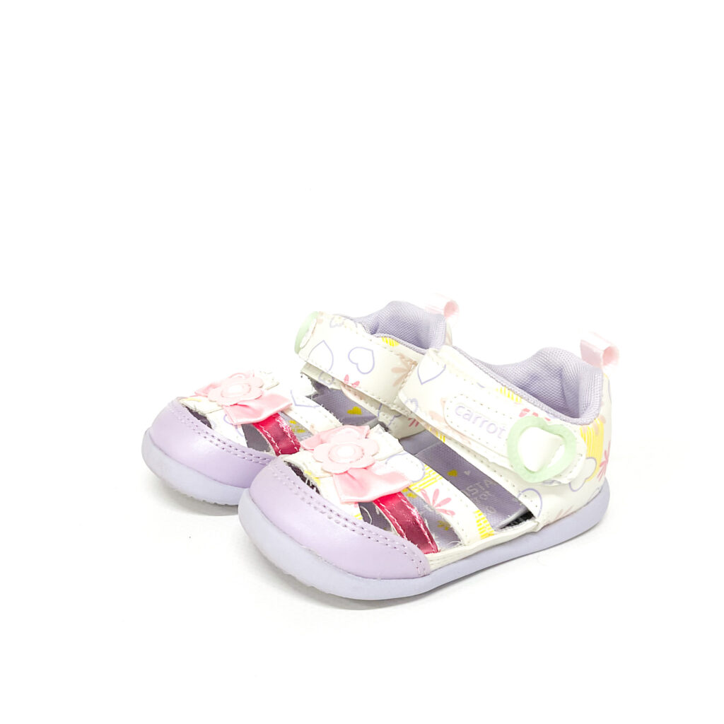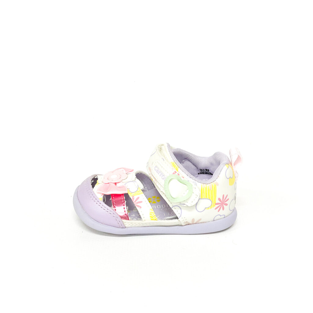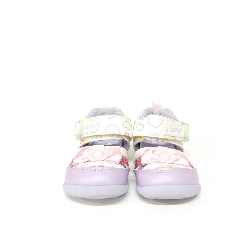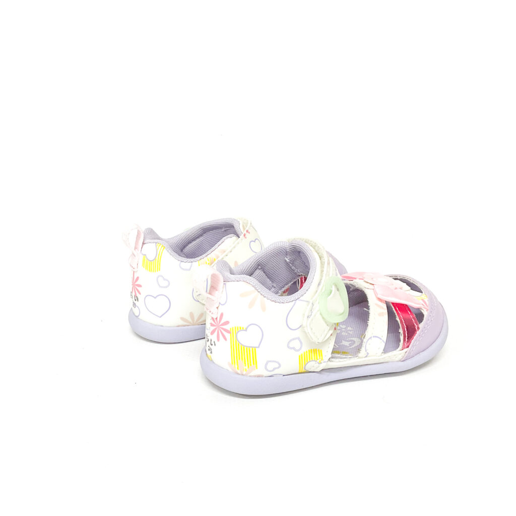 かかとの記名跡をシールで隠しています, ハートやリボンのあしらいなど可愛らしいサンダルです!