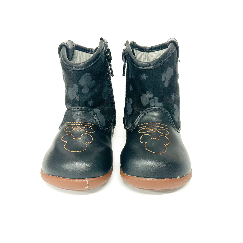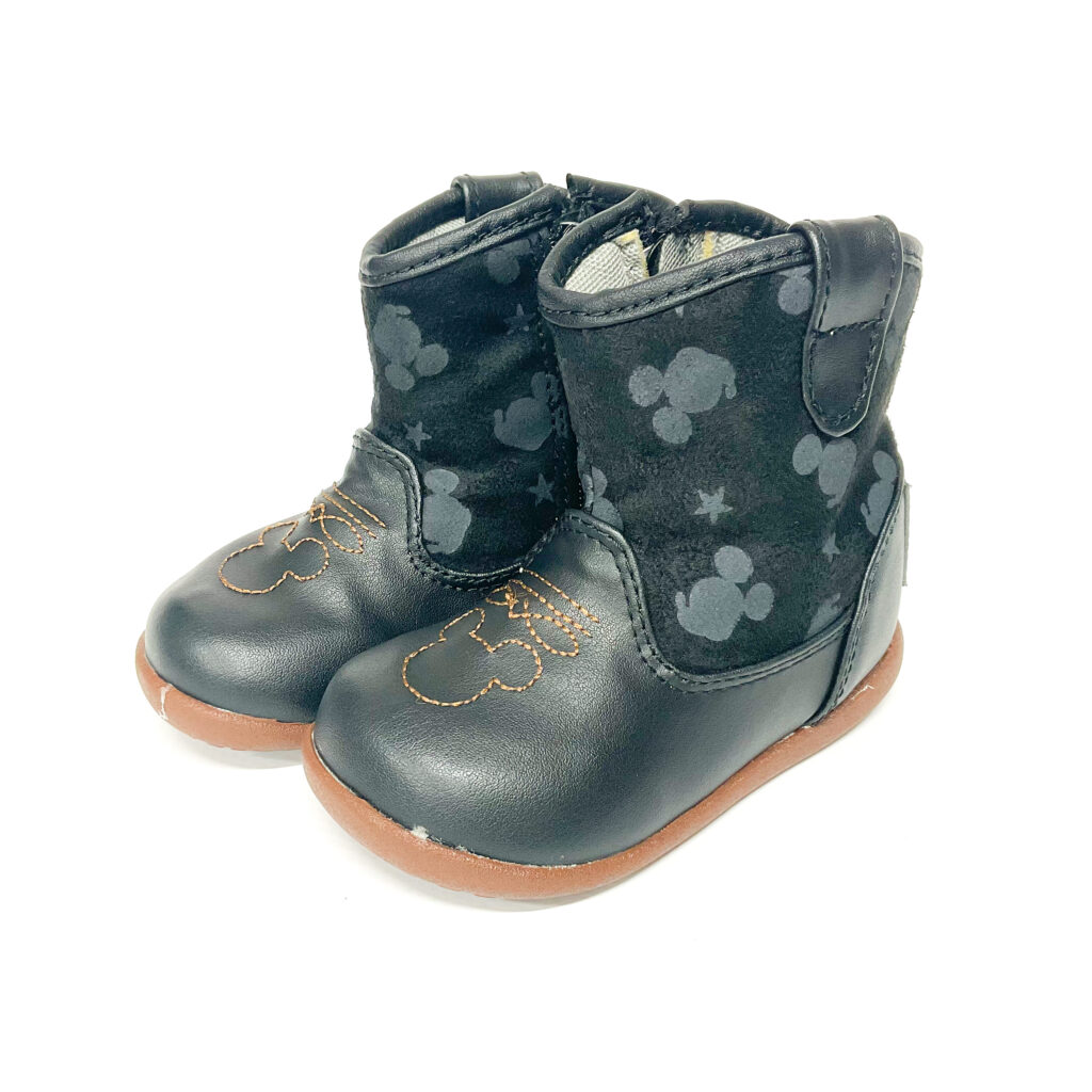 レザー調で大人っぽいんだけど、ミッキーがあしらわれていて可愛らしさもあるブーツ