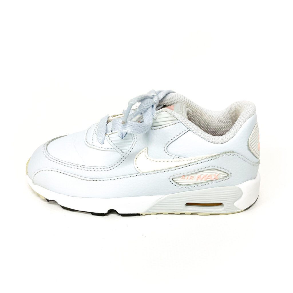 淡い水色にピンクのロゴが爽やかな1足です!