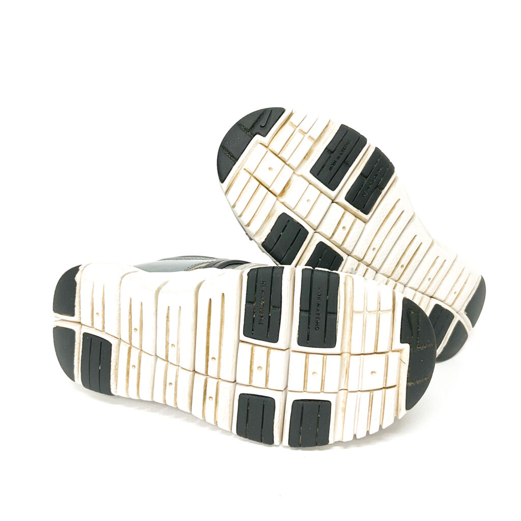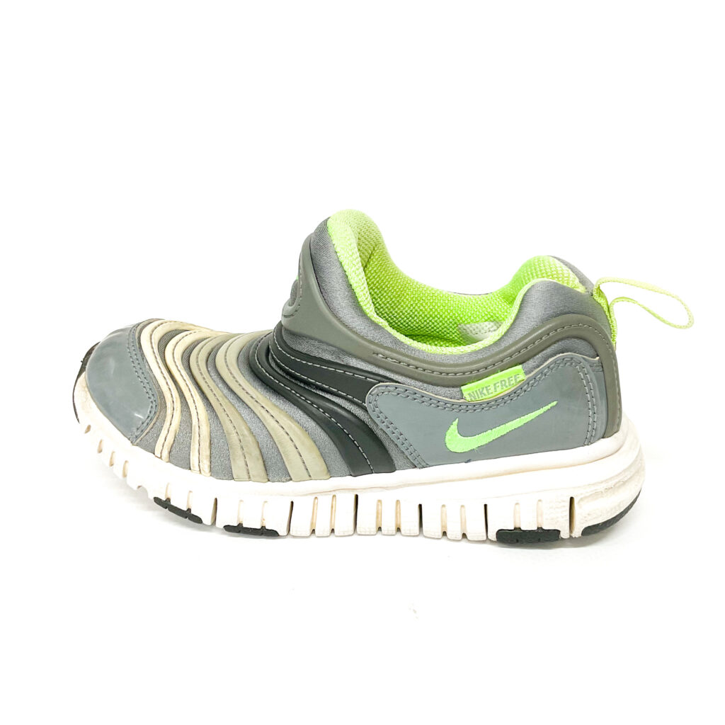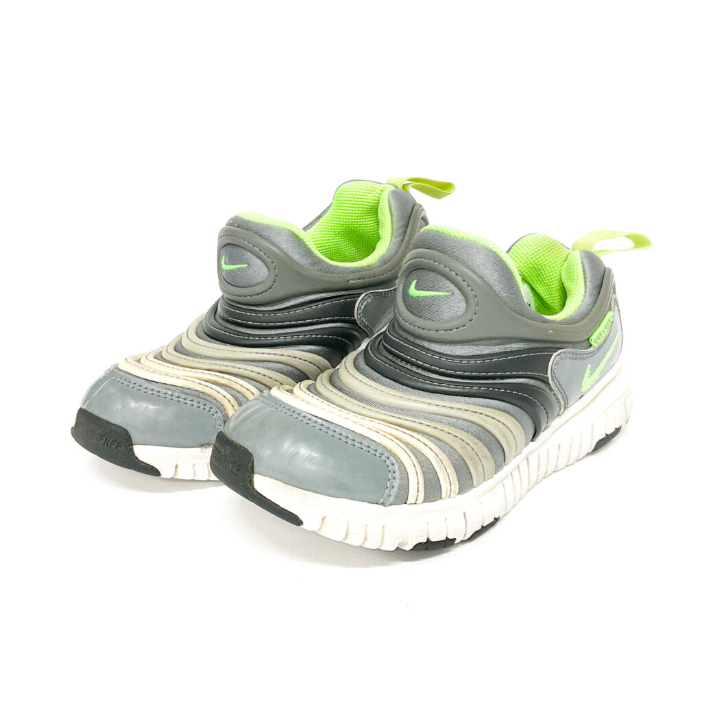 NIKEのダイナモ。つま先が反っているので歩き出しやすい。, 取りきれない汚れがあり、使用感があります