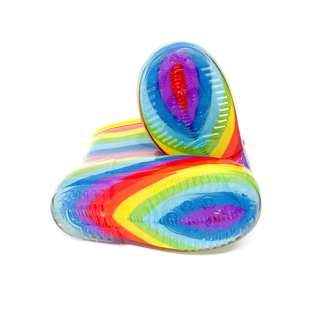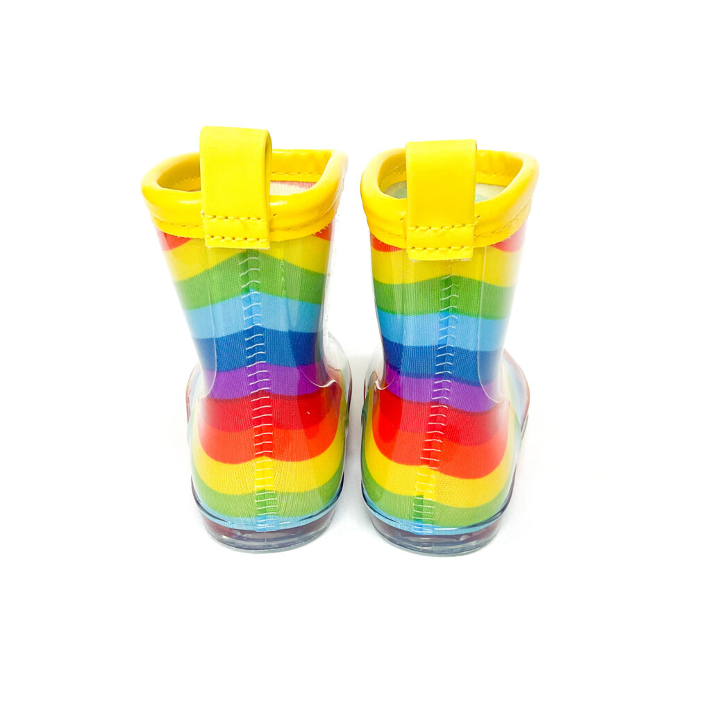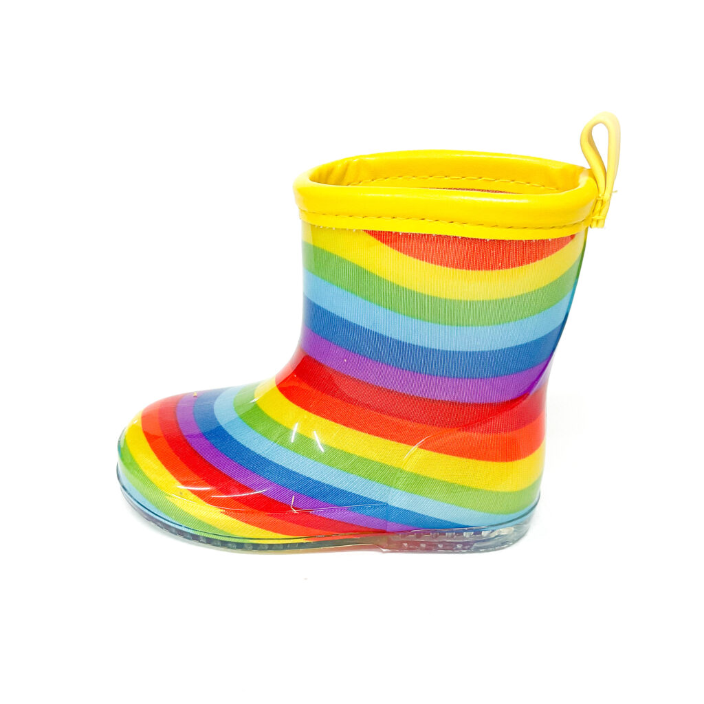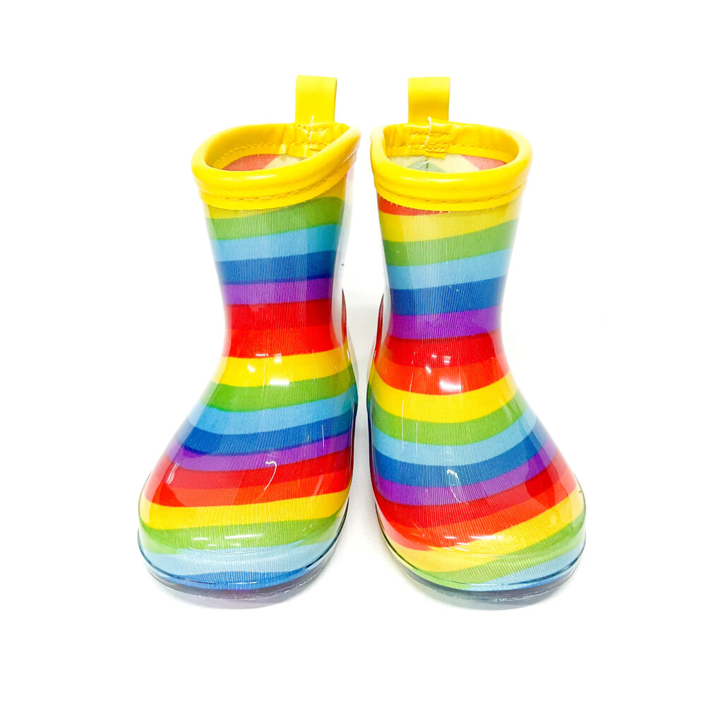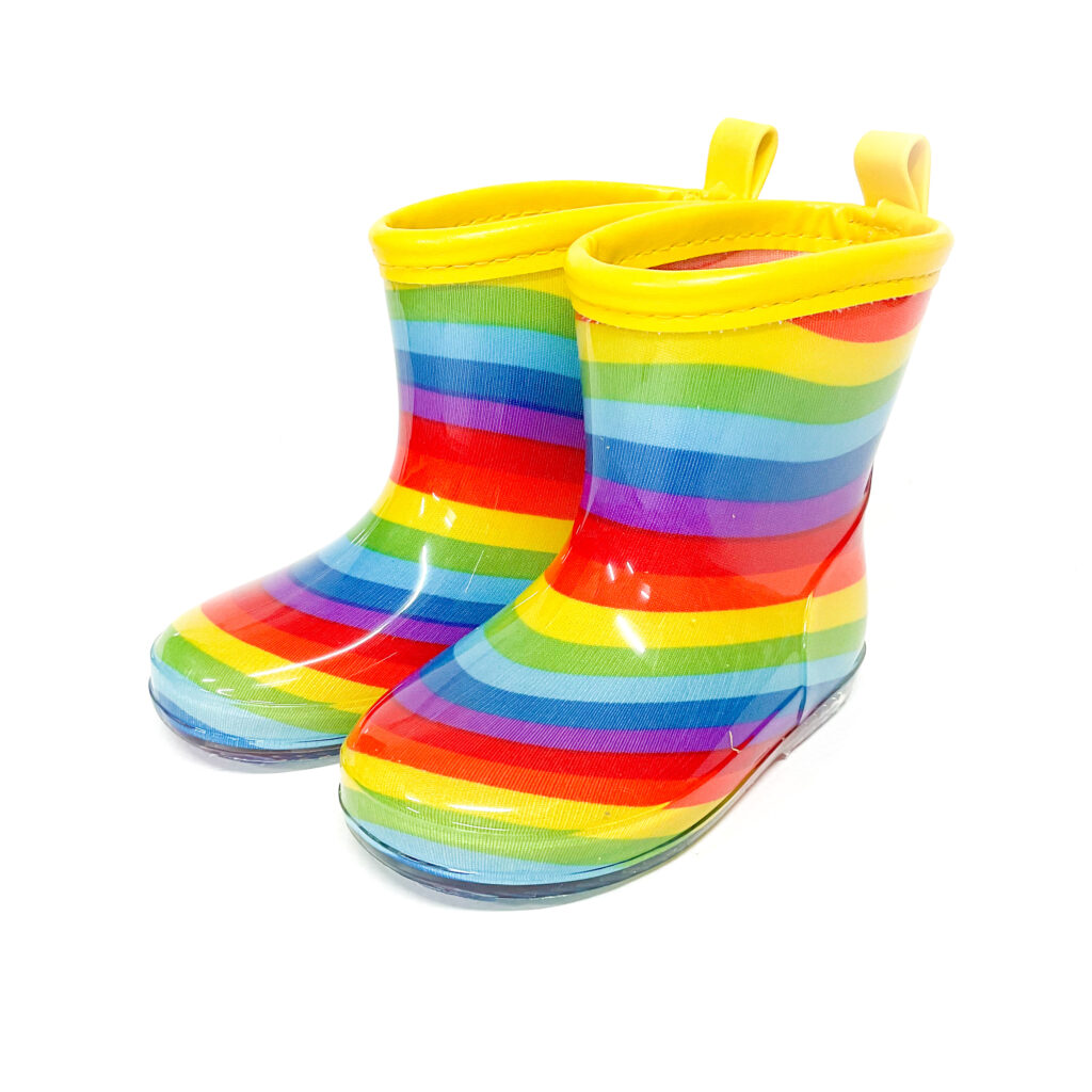 レインボー柄がかわいらしいレインブーツです!