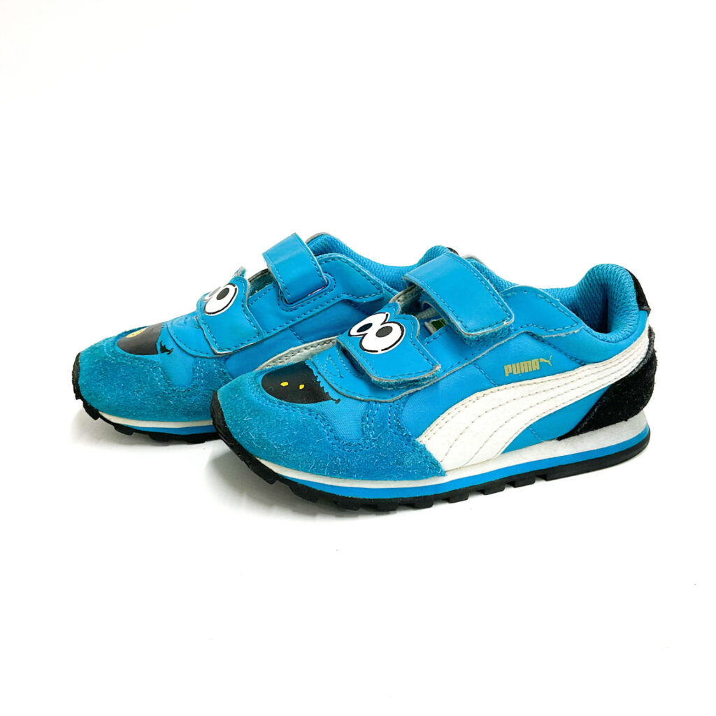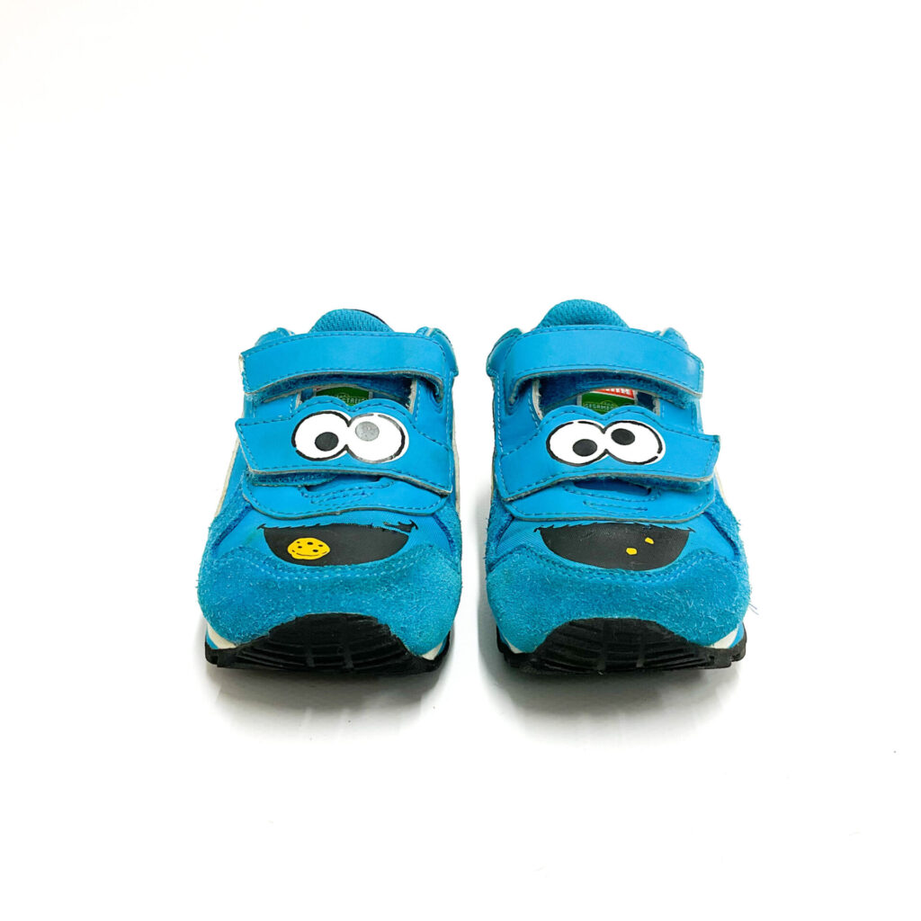 クッキーモンスターとのコラボモデルです!, プリントのハゲなど使用感があります, 甲部分のプリントがはげてなくなっています