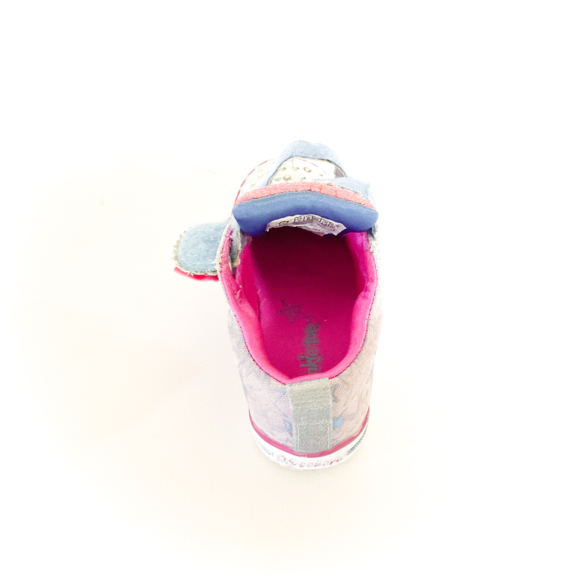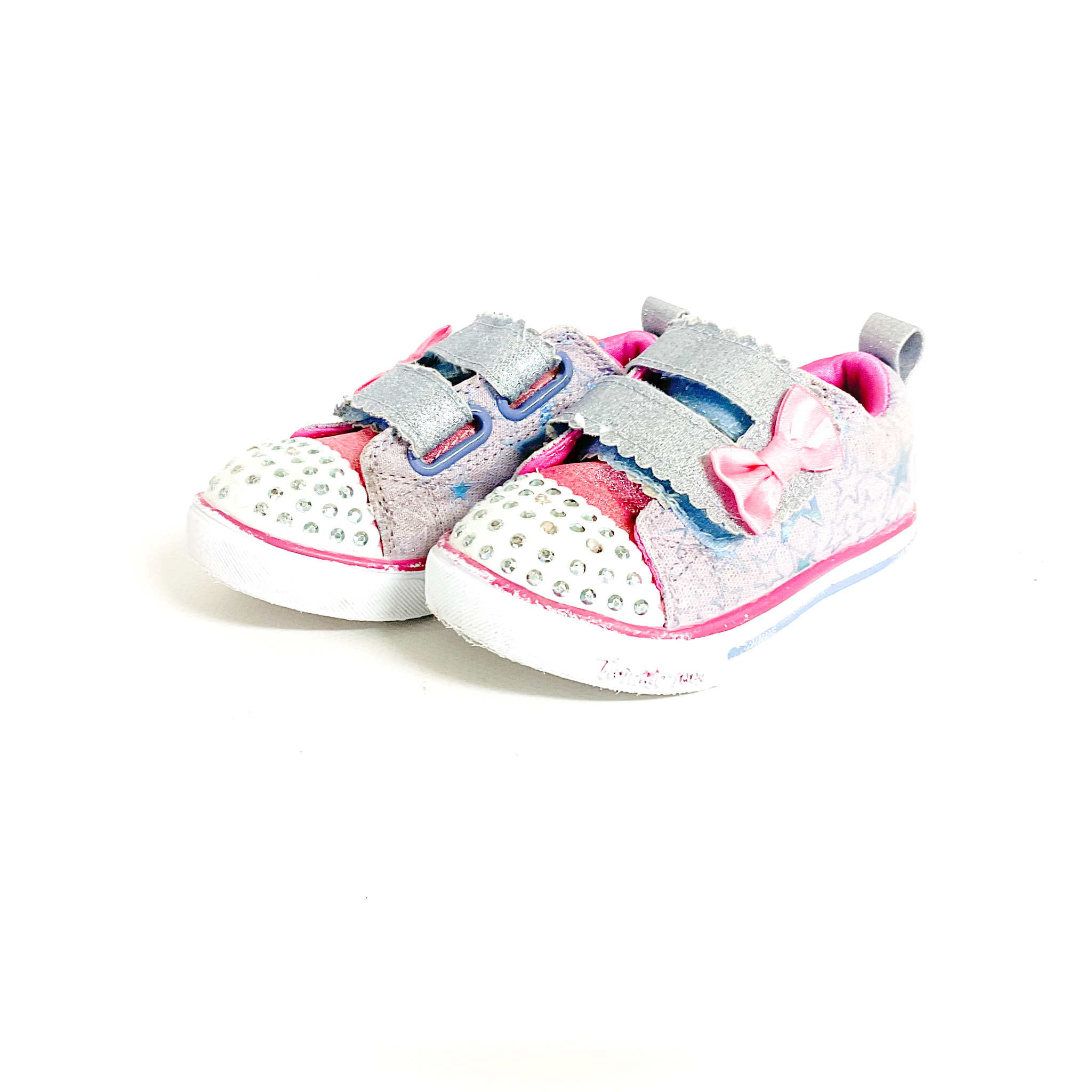 つま先が光りますが、右足は電池が切れてます