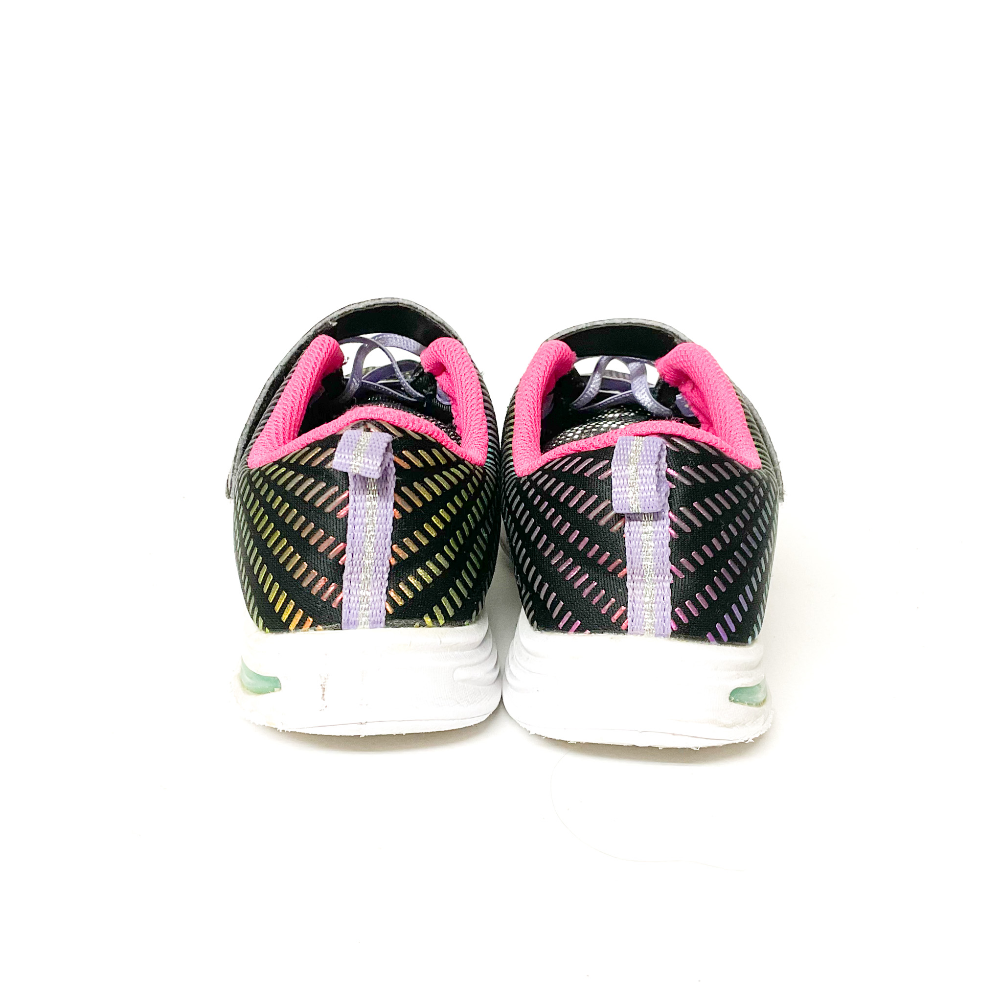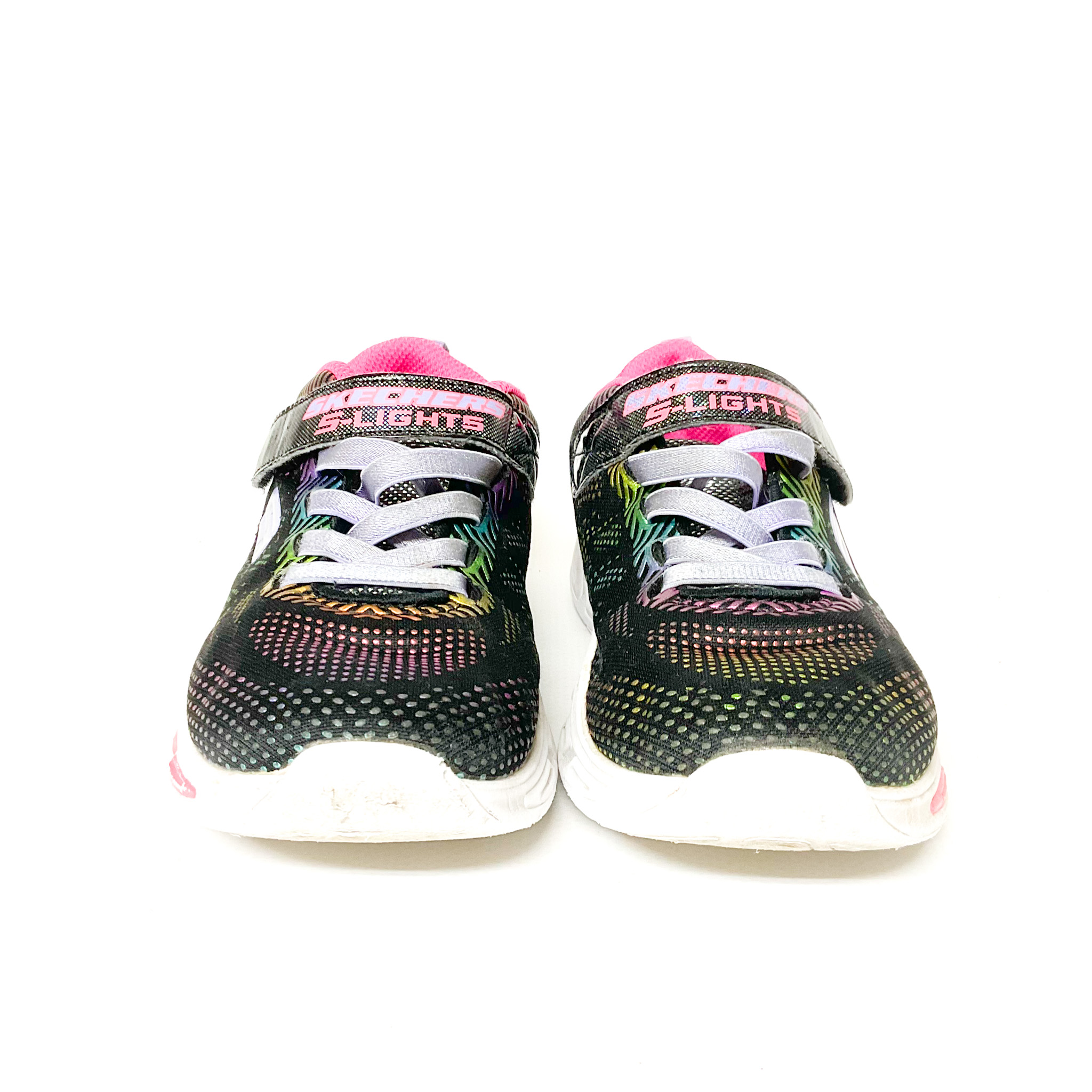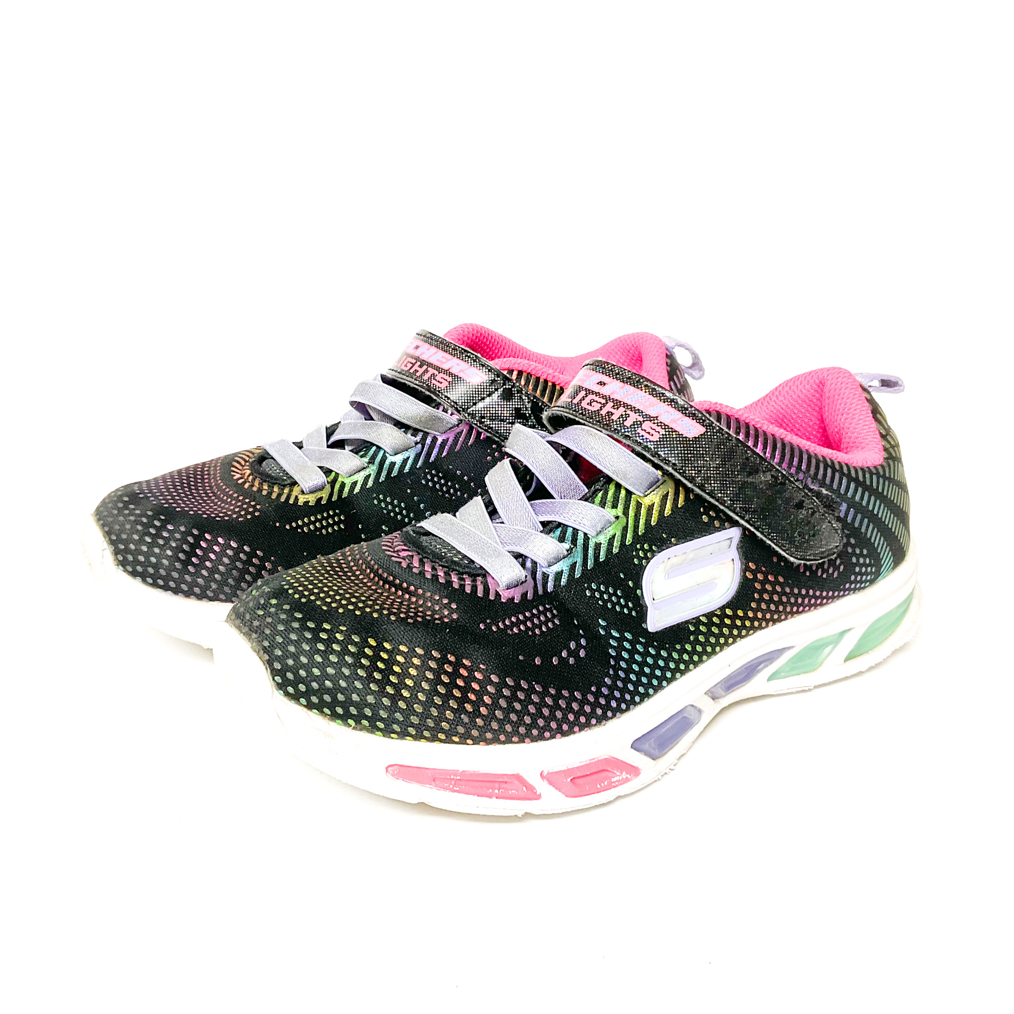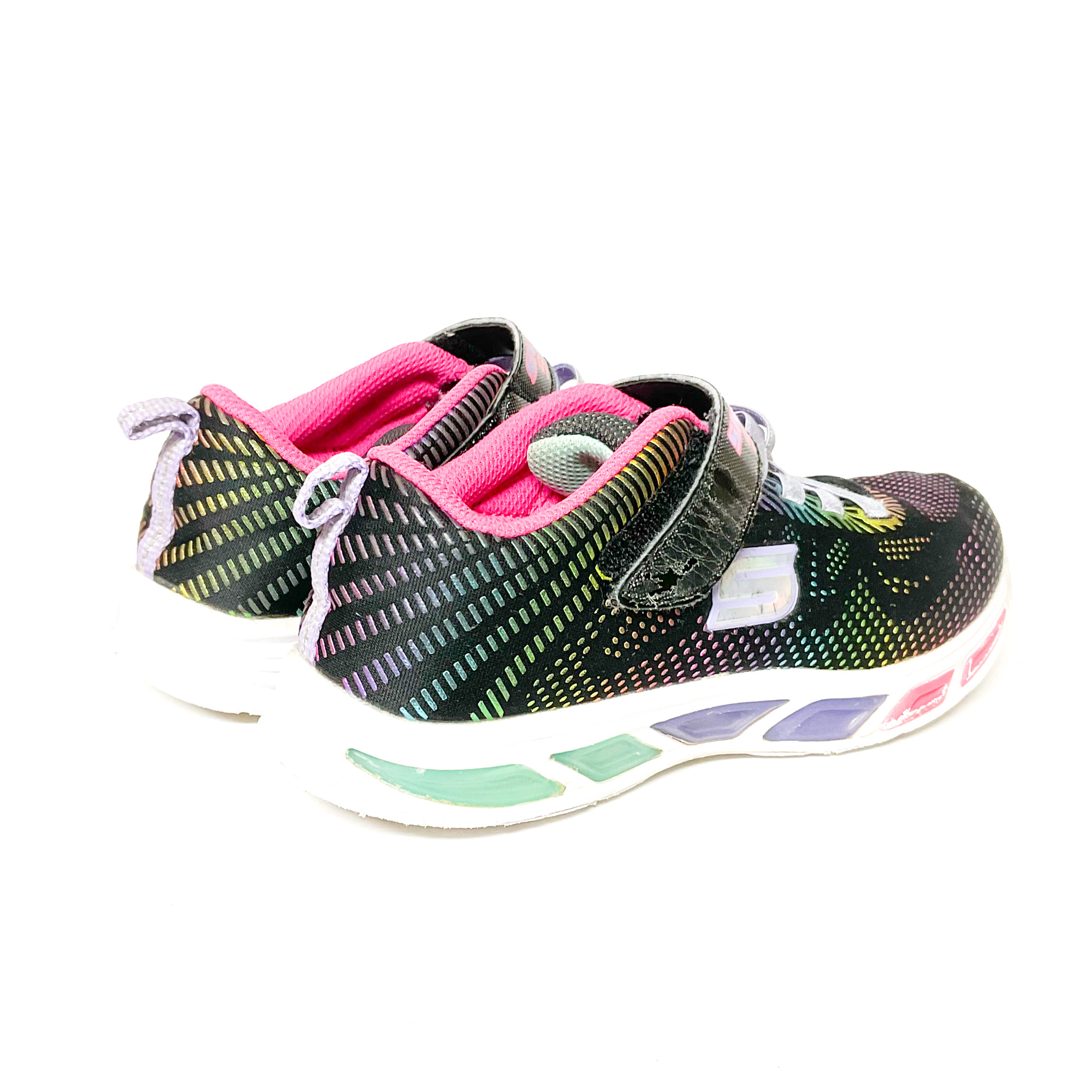 かかと・つま先がスレています。, 光る靴ですが、左足は光りません