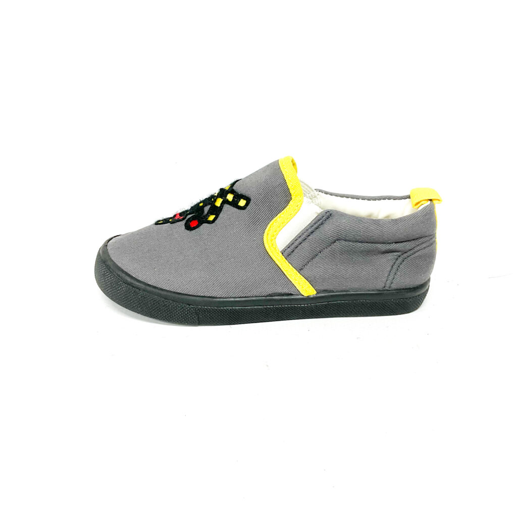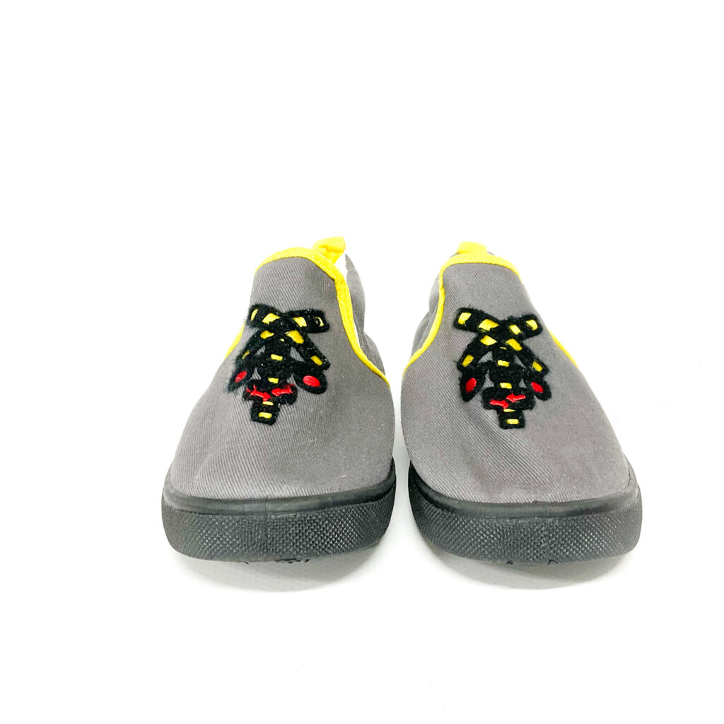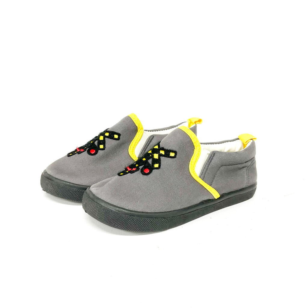 遮断機が描かれたスリッポンです!