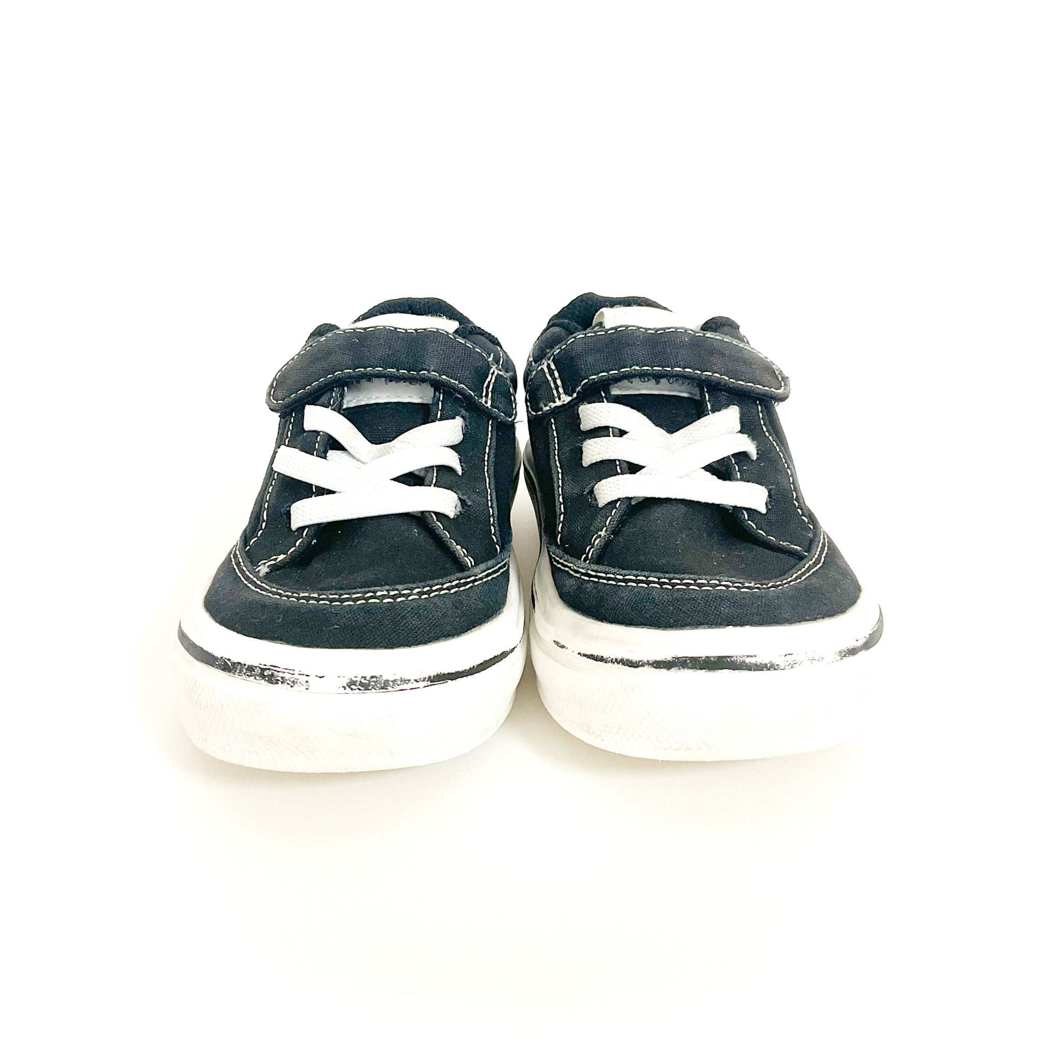 かかとが擦れてます, ソールに記名跡があります, 紐はダミーでベルクロタイプです